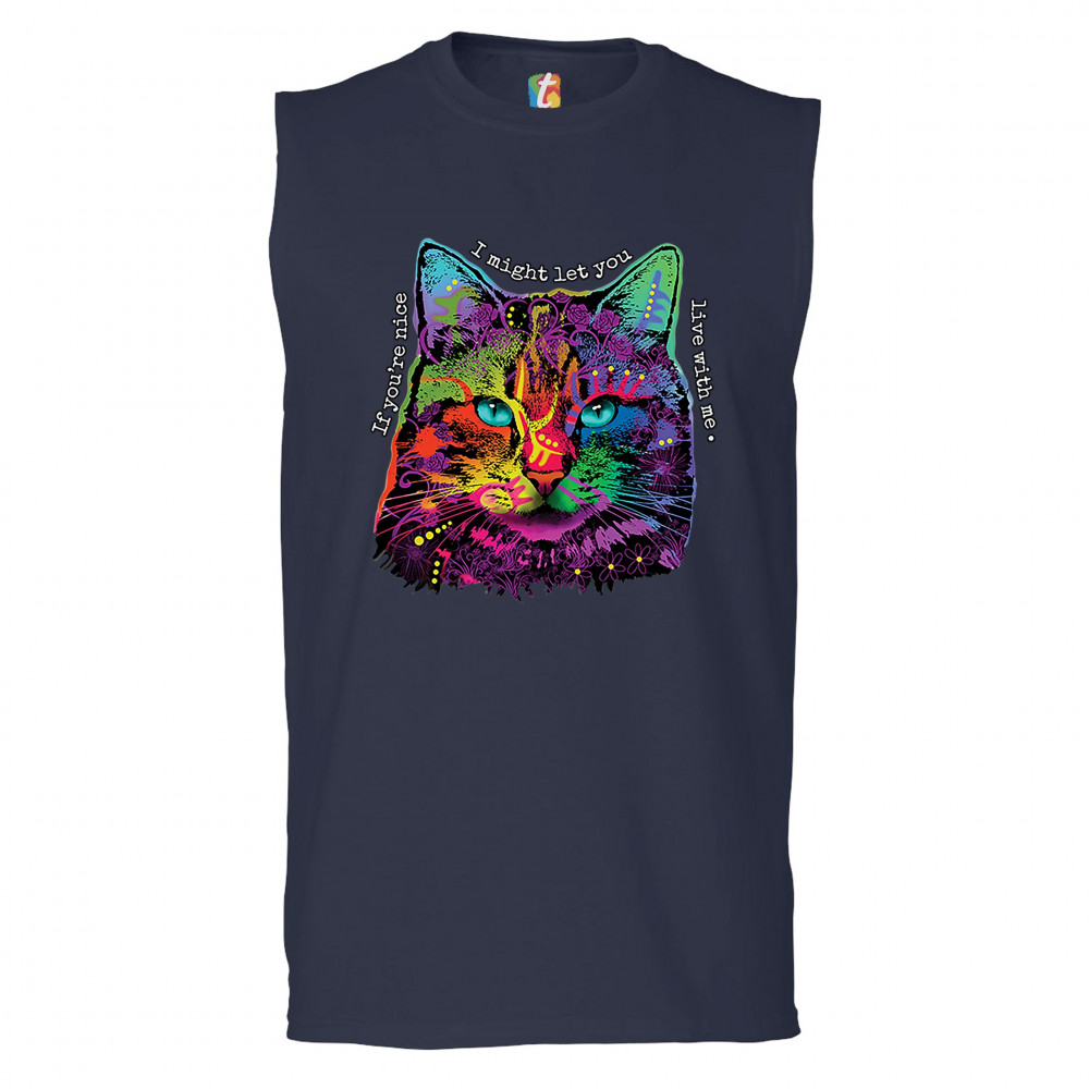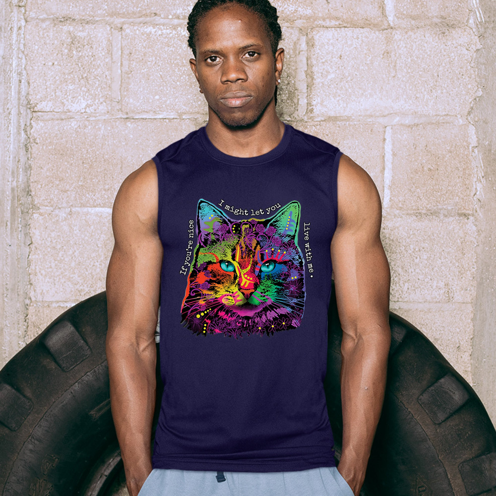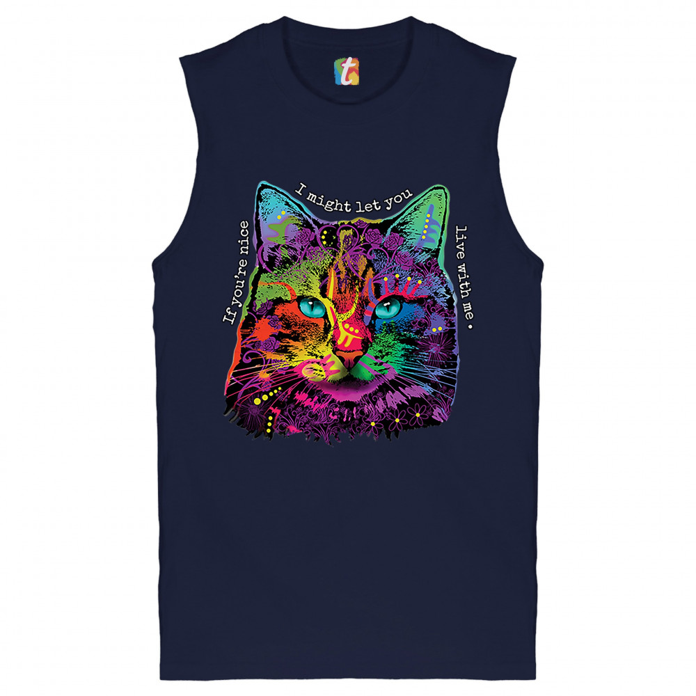 IF YOU'RE NICE I MIGHT LET YOU LIVE WITH ME muscle shirt andy maxx cat men's navy blue
