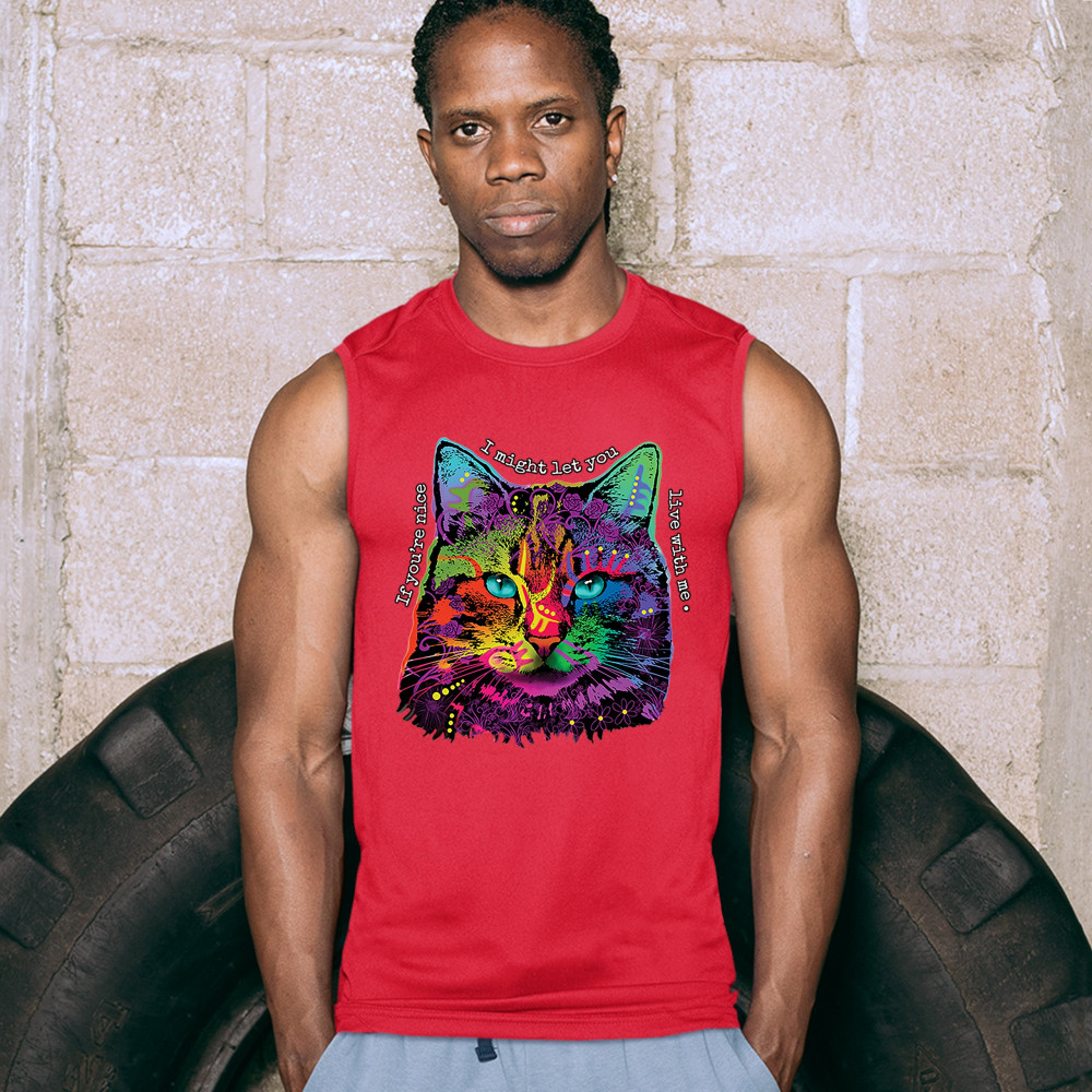 IF YOU'RE NICE I MIGHT LET YOU LIVE WITH ME muscle shirt andy maxx cat men's red