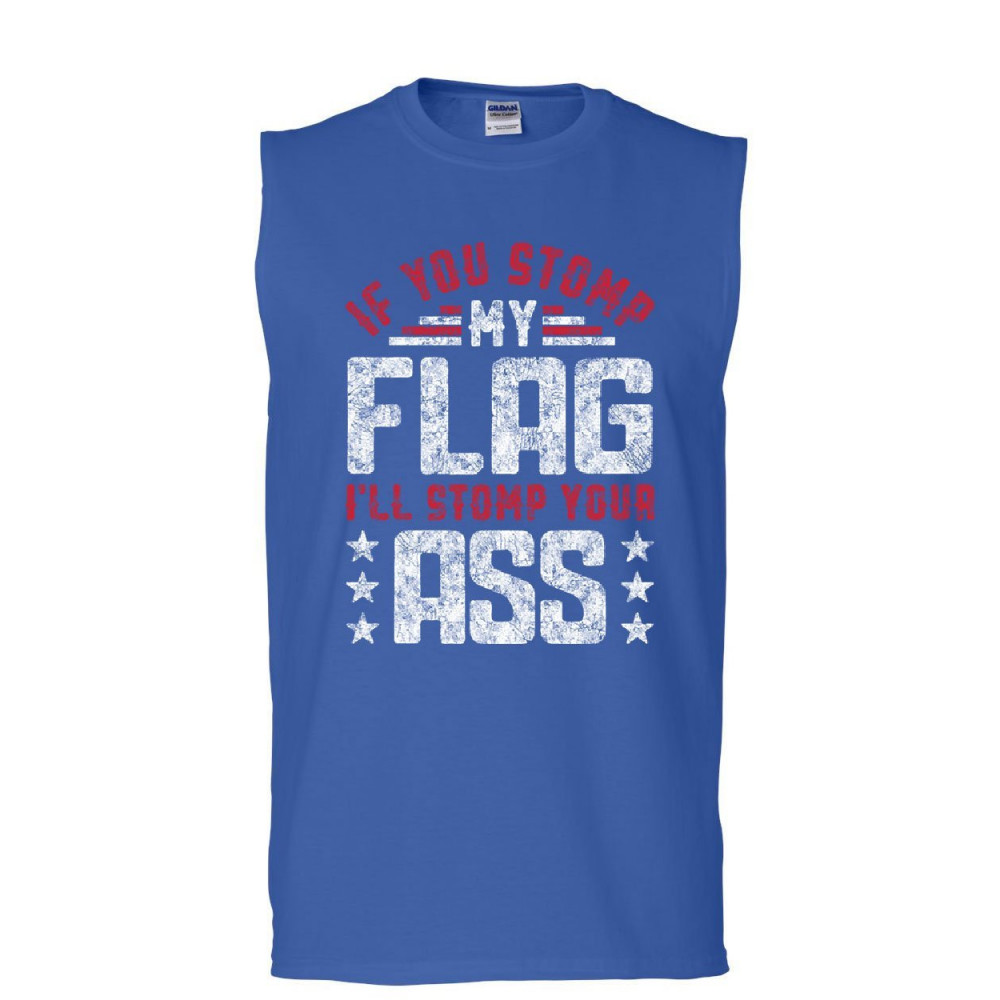 IF YOU STOMP MY FLAG muscle shirt defend american flag patriot usa sleeveless blue