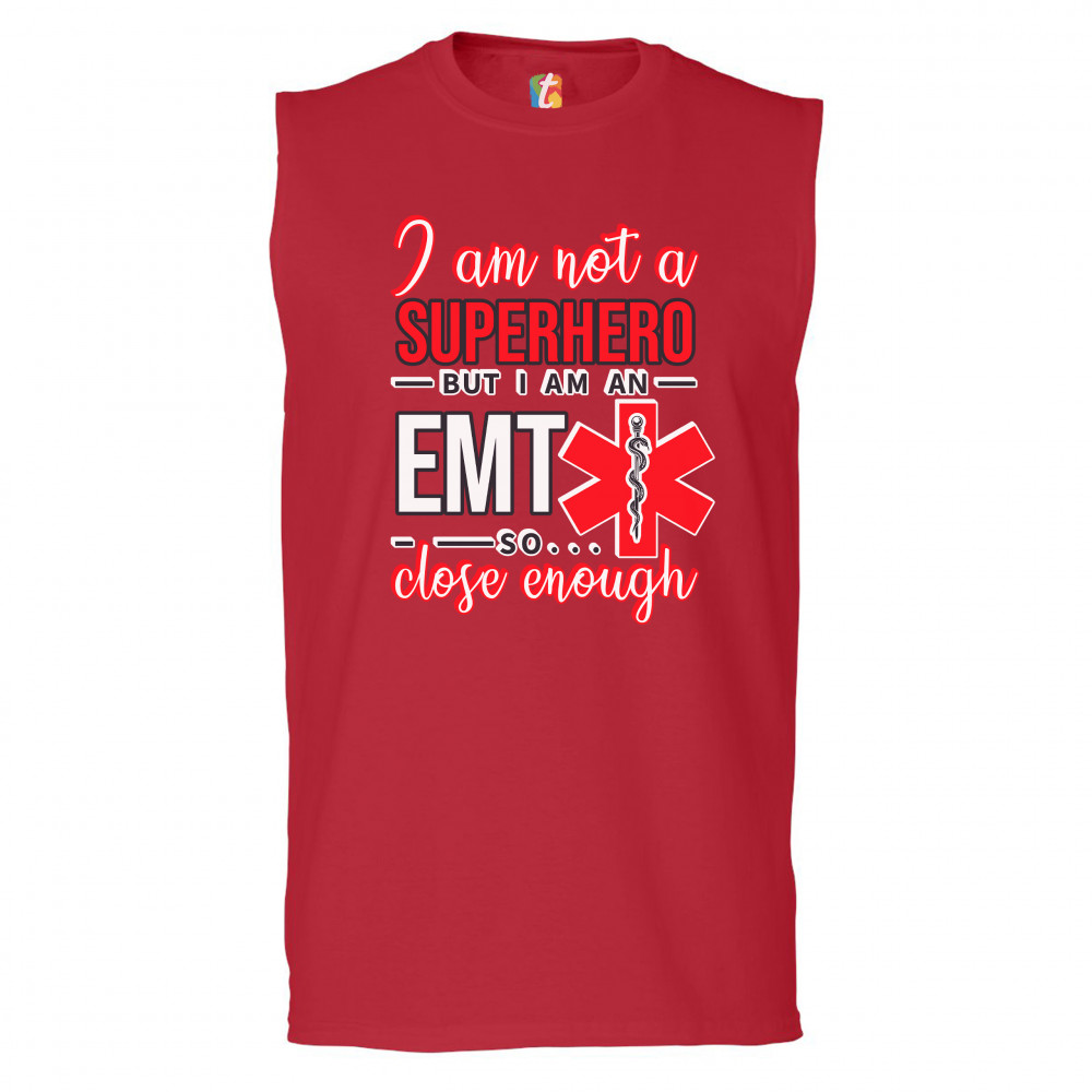 A funny print saying "I'm Not a Superhero But I'm an EMT so Close Enough". All words are written in different fonts. The print also includes the Star of Life, the worldwide recognized symbol of emergency medical services, with the Rod of Asclepius inside of it. A great choice as a gift for a first responder.