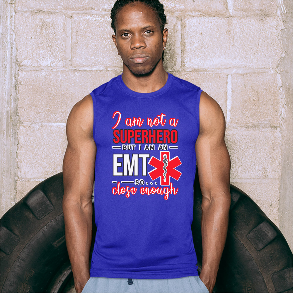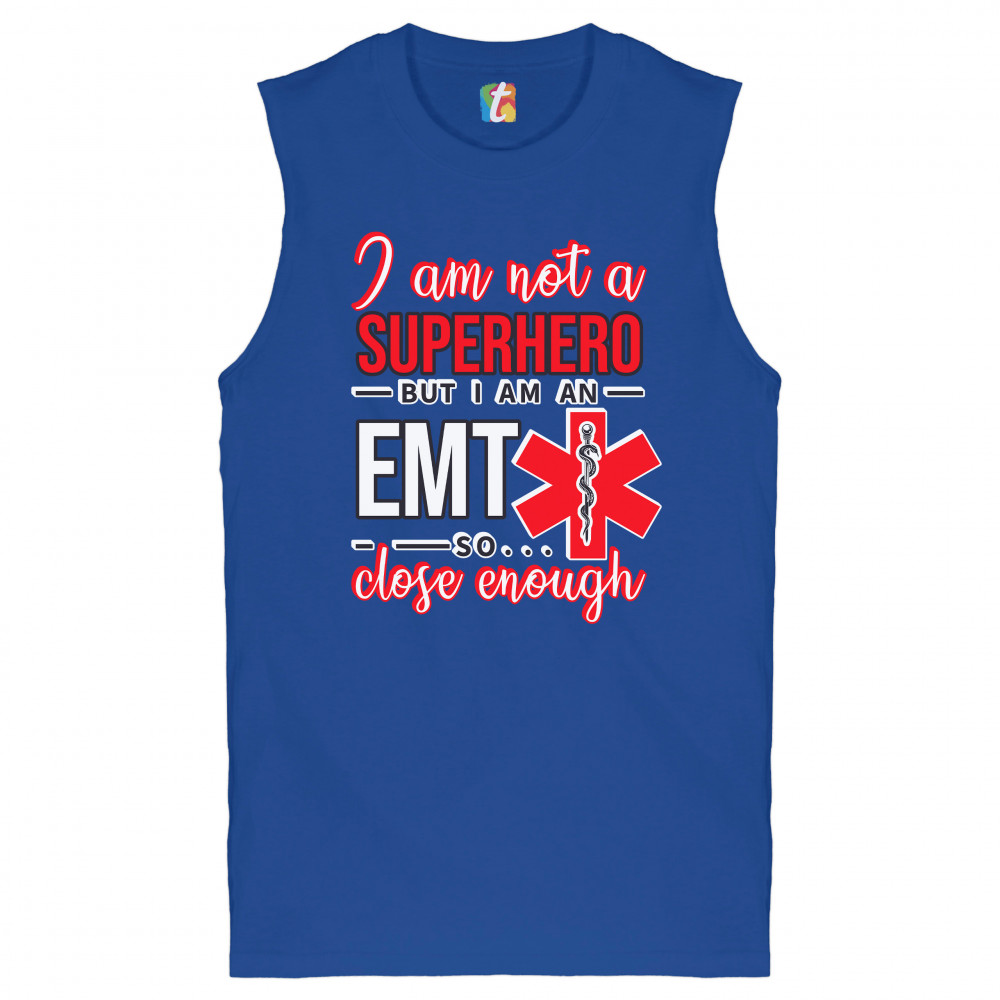 A funny print saying "I'm Not a Superhero But I'm an EMT so Close Enough". All words are written in different fonts. The print also includes the Star of Life, the worldwide recognized symbol of emergency medical services, with the Rod of Asclepius inside of it. A great choice as a gift for a first responder.