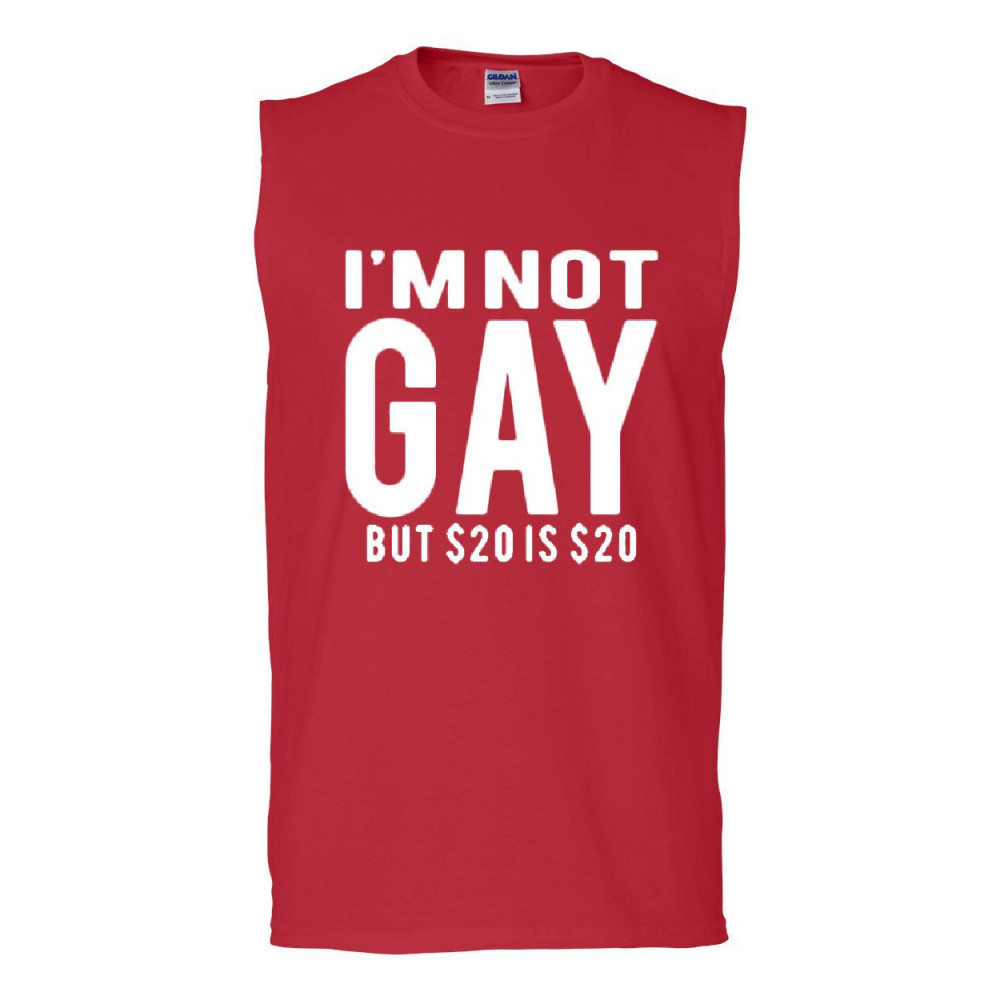 I'M NOT GAY BUT $20 IS $20 muscle shirt funny red
