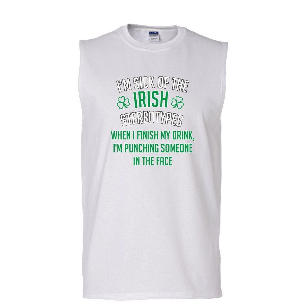 SICK OF THE IRISH STEREOTYPES i'm sick of irish stereotypes muscle shirt st. patrick's day beer pub sleeveless white