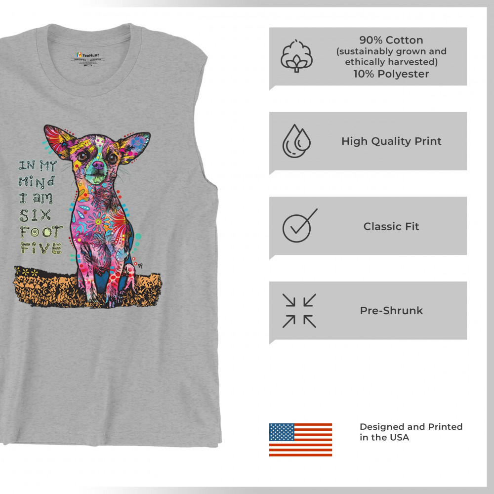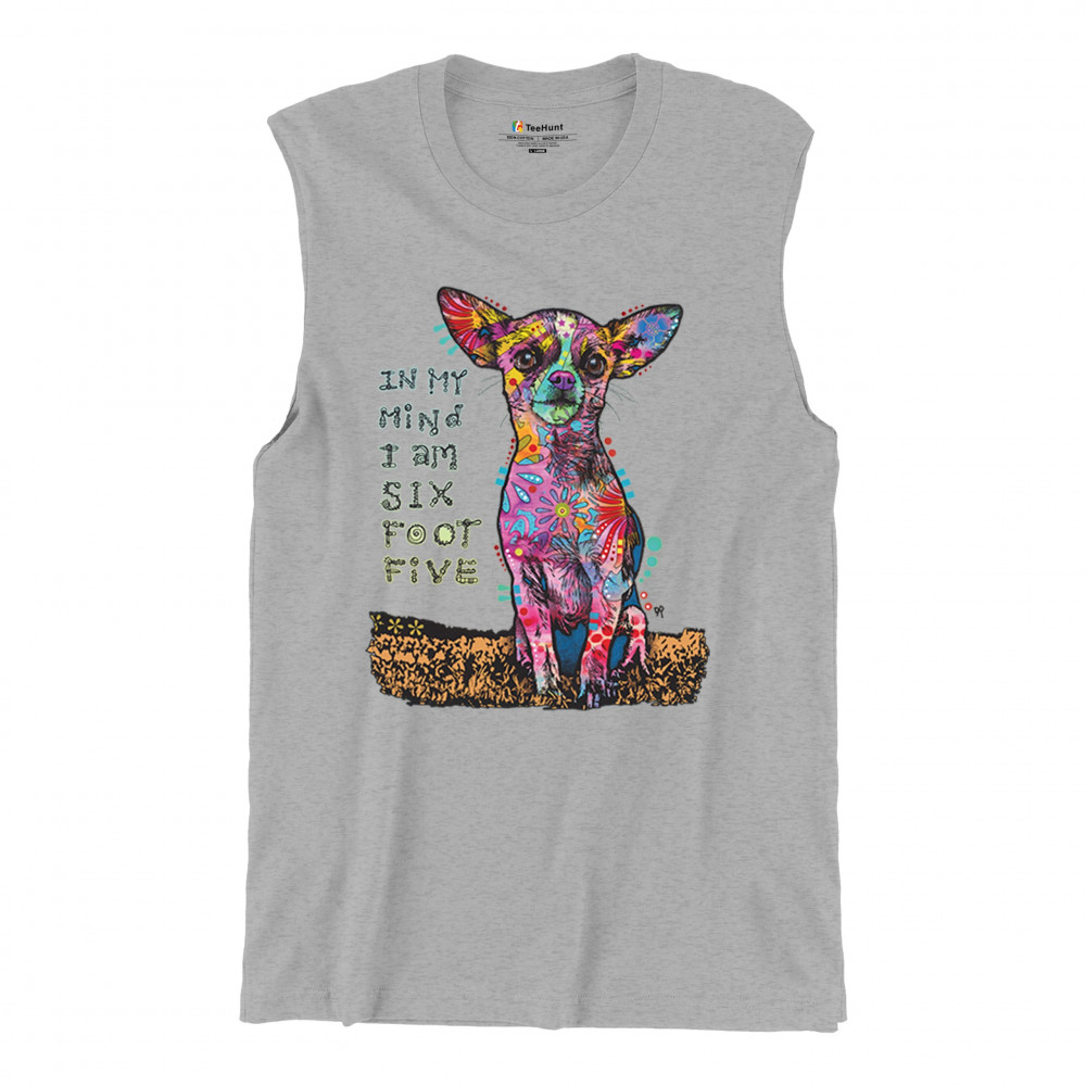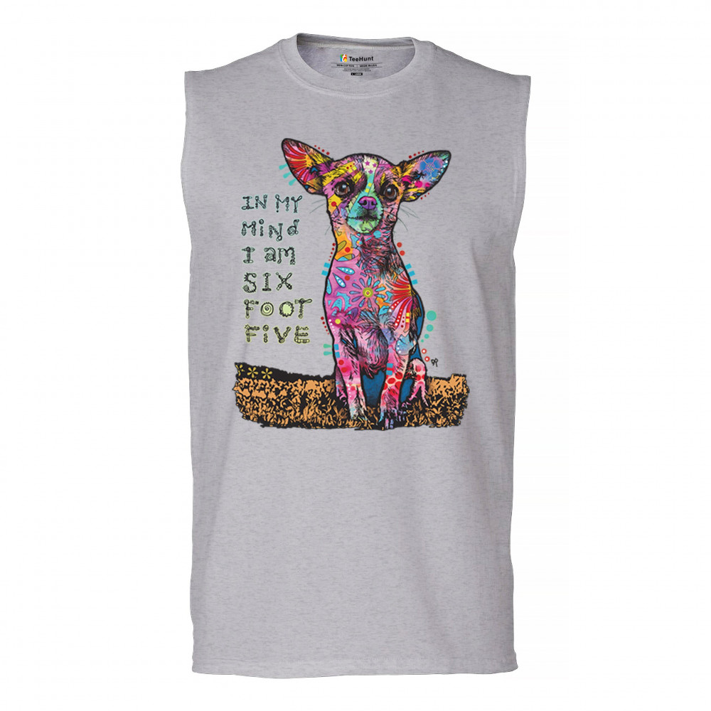 IN MY MIND I'M SIX FOOT FIVE muscle shirt dean russo funny chihuahua men's gray
