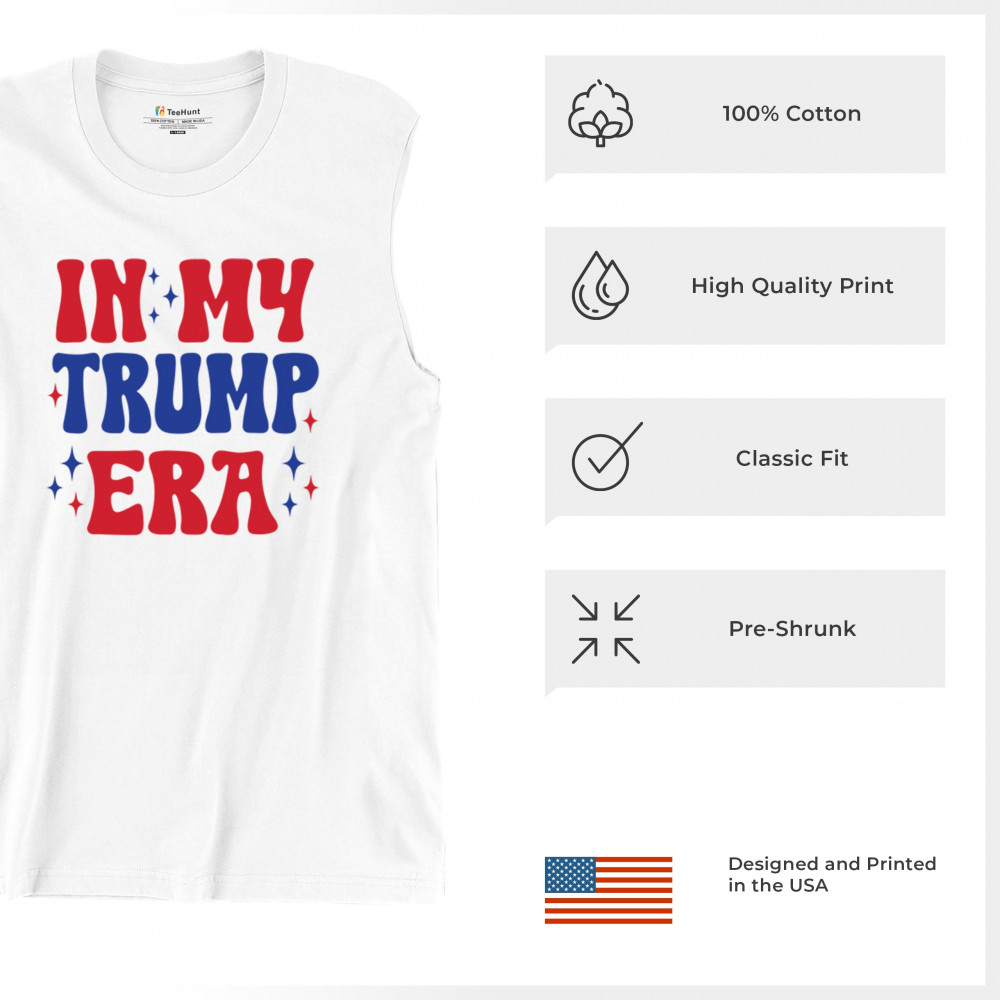 Declare your pride with this "In My Trump Era" design. Perfect for Trump supporters embracing America First, Republican values, and freedom.
