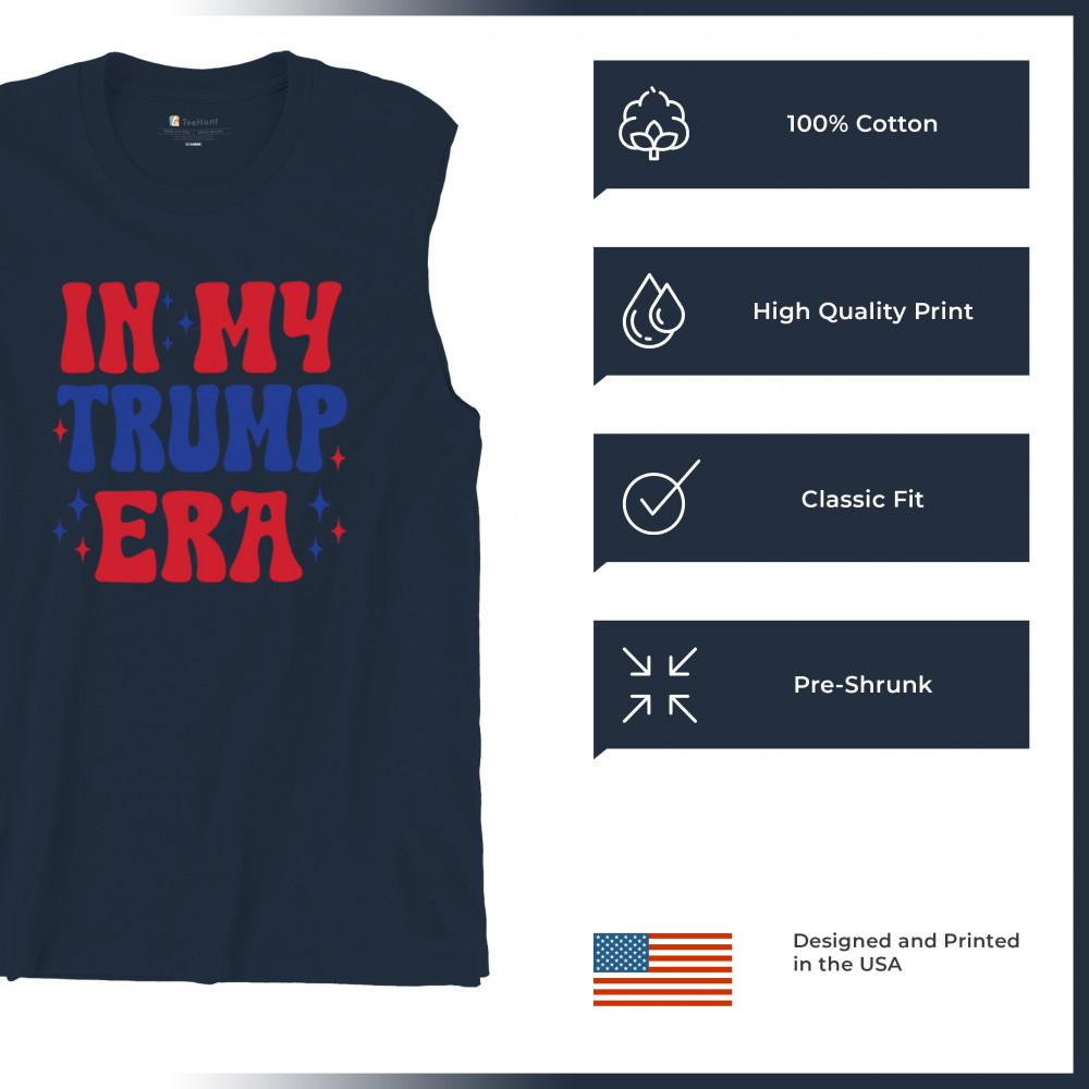Declare your pride with this "In My Trump Era" design. Perfect for Trump supporters embracing America First, Republican values, and freedom.