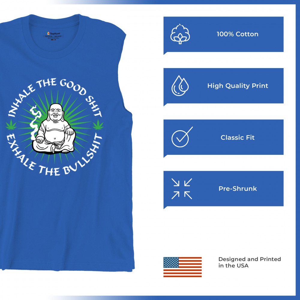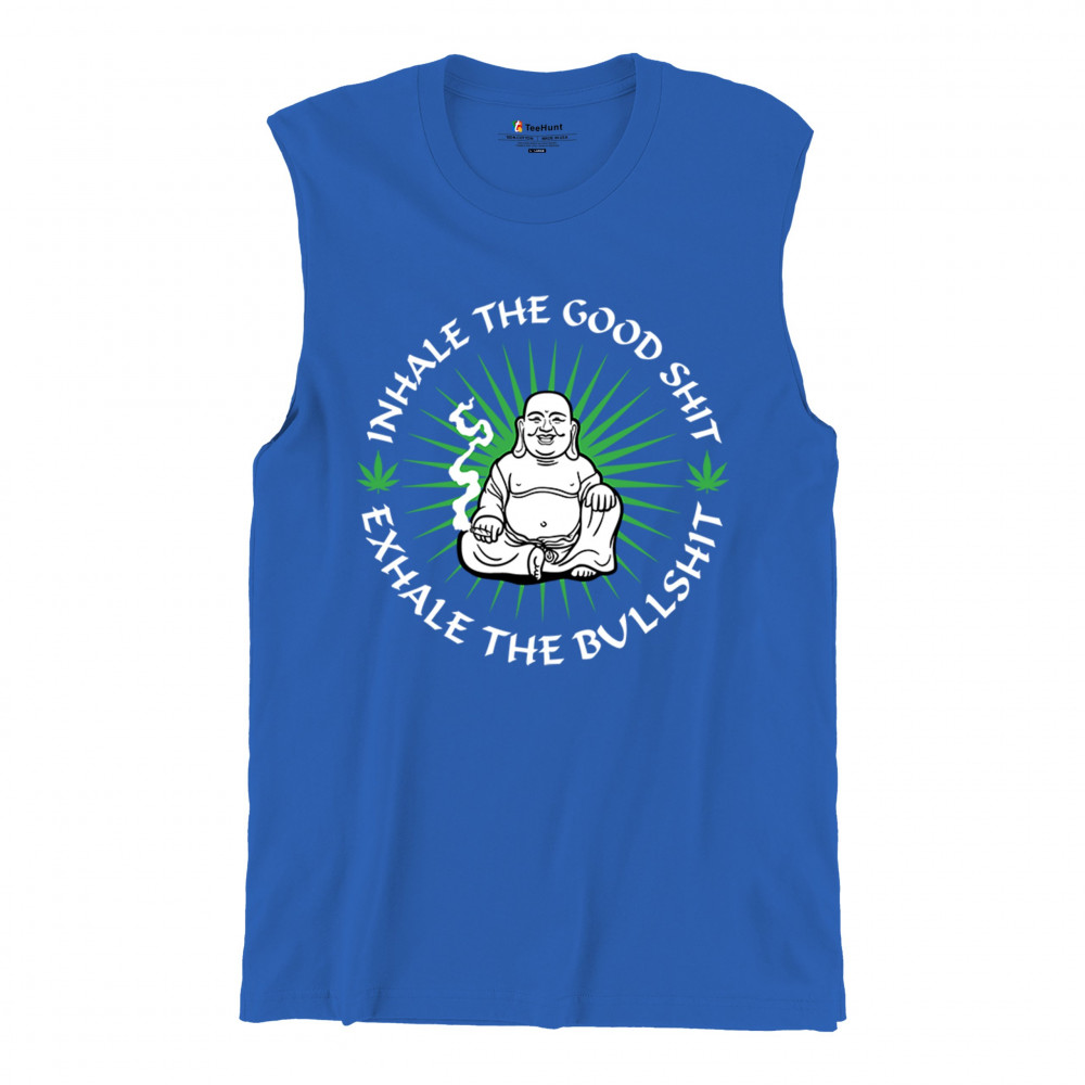 This hilarious and zen-inspired design features a happy Buddha with a joint, surrounded by cannabis leaves. “Inhale the Good Shit, Exhale the Bullshit†delivers chill stoner wisdom with a wink. Ideal for mindful marijuana lovers, 420 fans, or spiritual rebels with a sense of humor and a love for weed.