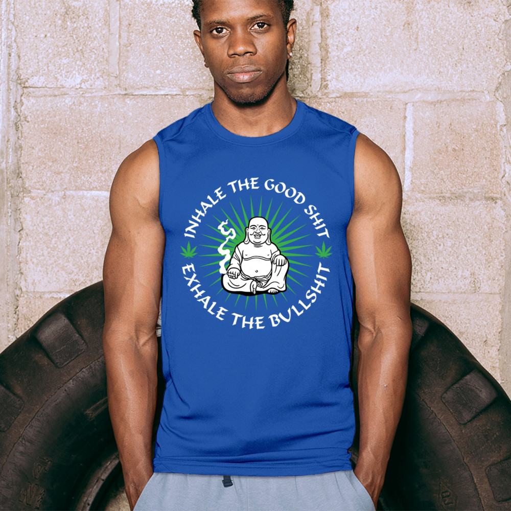 Stoner Buddha design with weed leaves and funny zen slogan—perfect for chill 420 lovers who inhale peace and exhale the BS.