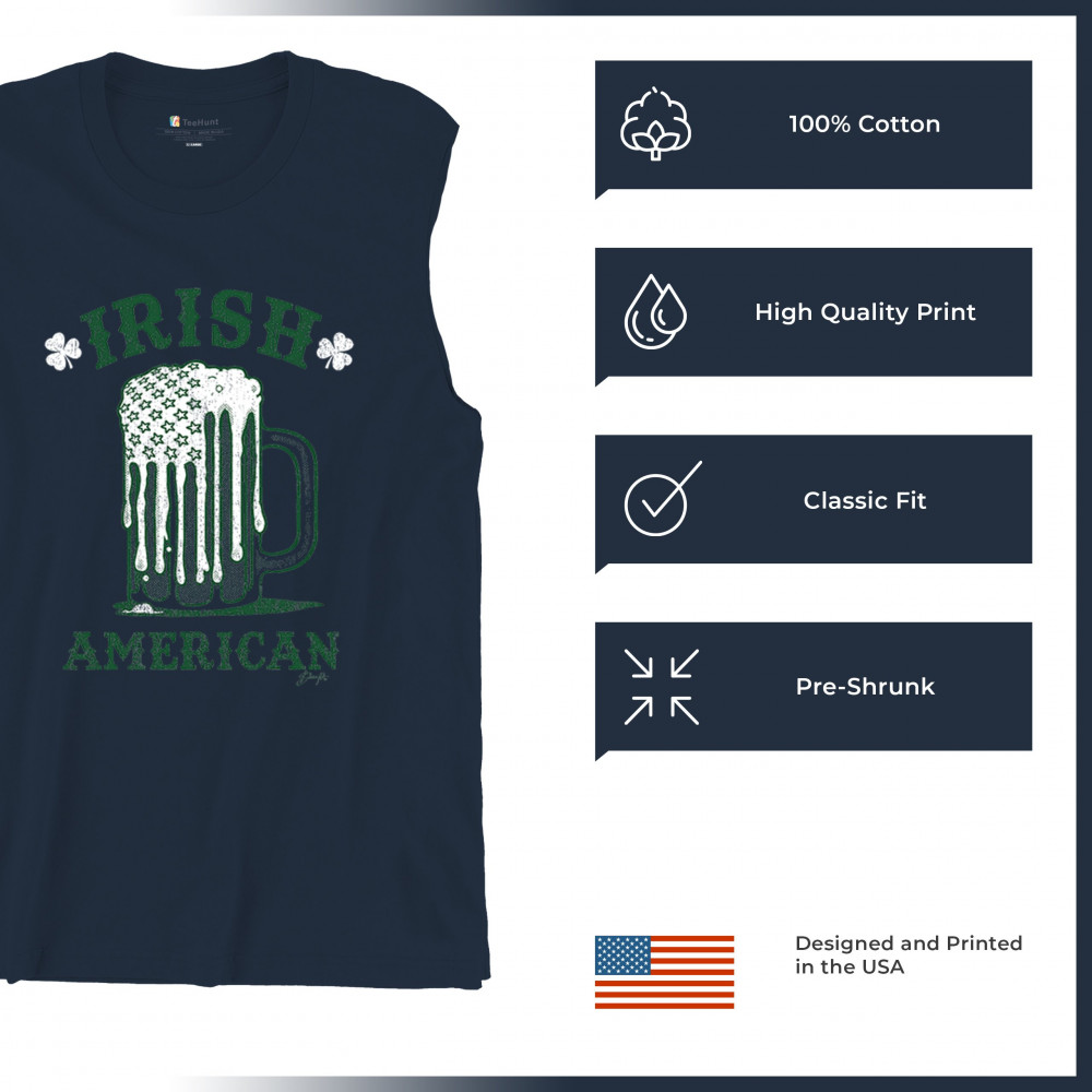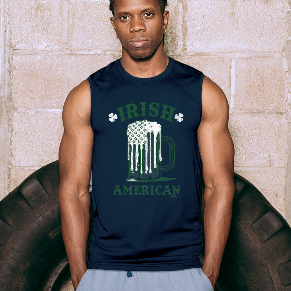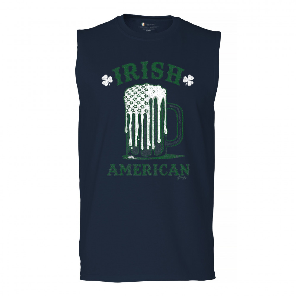 IRISH AMERICAN ST PATRICK'S DAY muscle shirt shamrock shenanigans beer men's navy blue