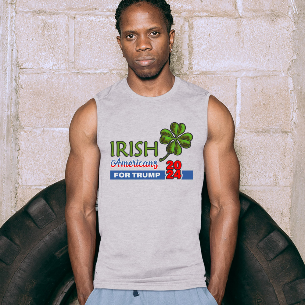 IRISH AMERICANS FOR TRUMP muscle shirt pro donald trump 2024 shamrock men's gray