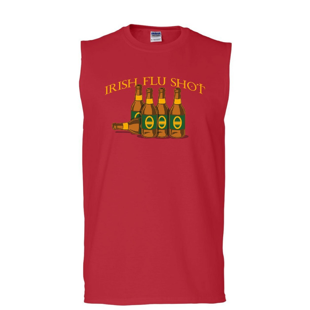 IRISH FLU SHOT FUNNY muscle shirt st patrick's day pubs drinking beer sleeveless red