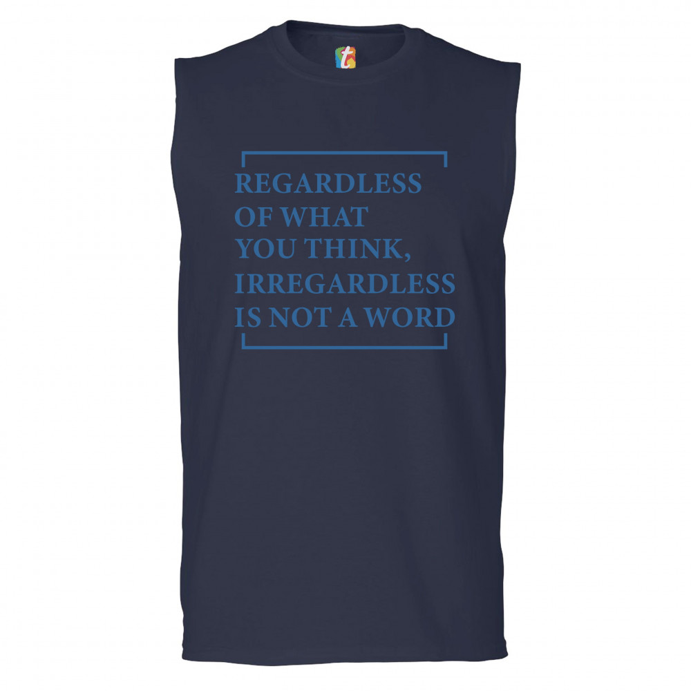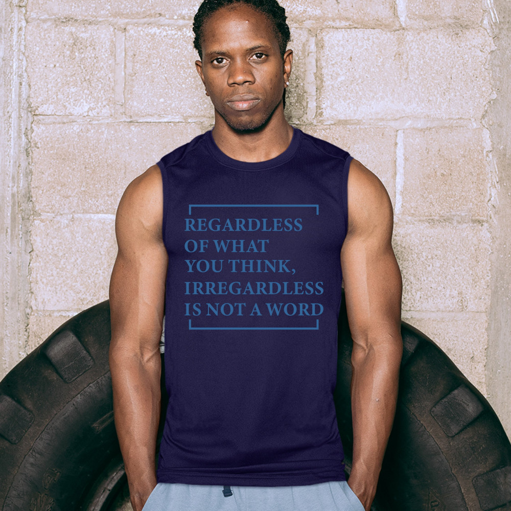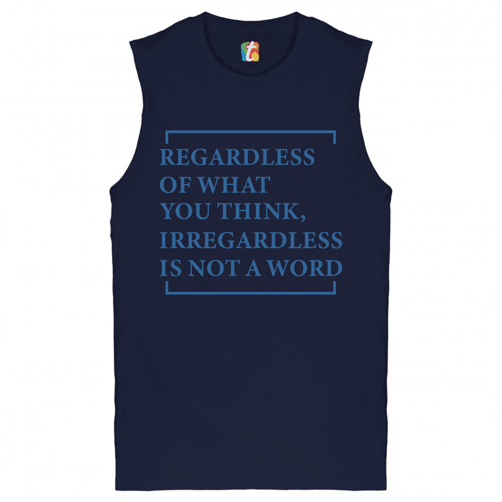 IRREGARDLESS IS NOT A WORD muscle shirt funny english grammar men's navy blue