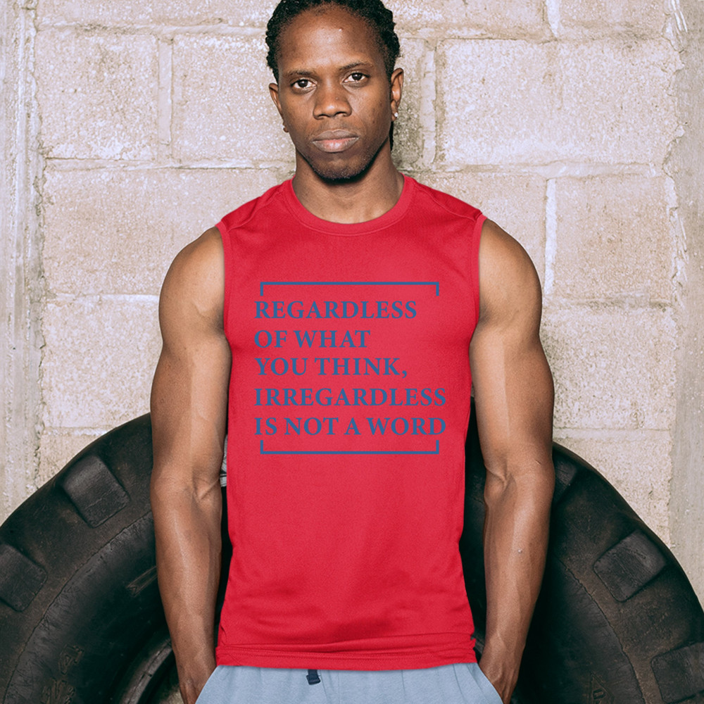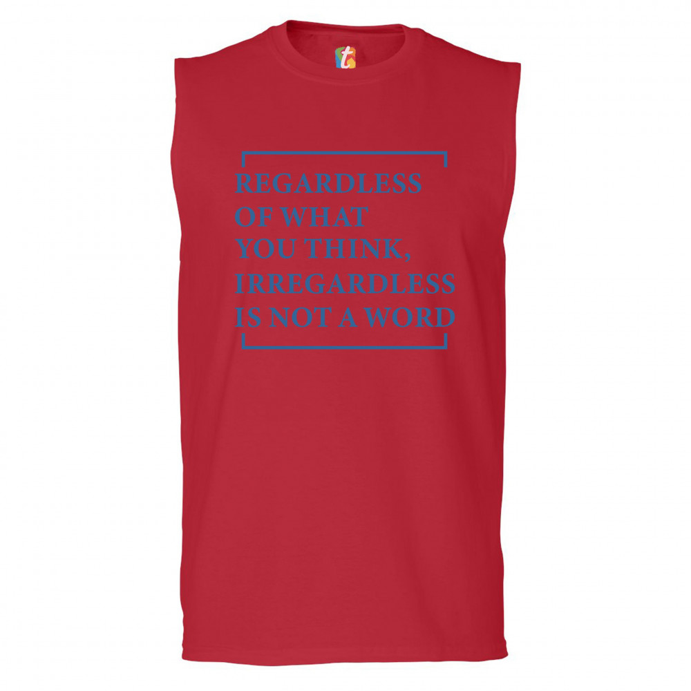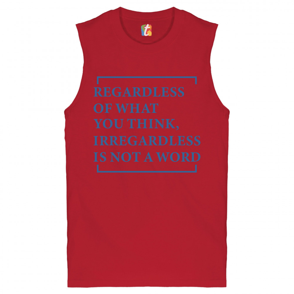IRREGARDLESS IS NOT A WORD muscle shirt funny english grammar men's red