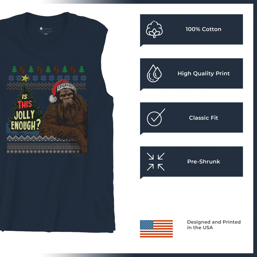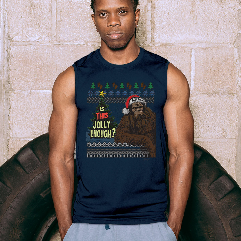 Embrace the holiday spirit with a touch of humor! This "Is This Jolly Enough?" design brings a fun twist to festive wear, showcasing a legendary figure dressed up in a Santa hat, ready to spread cheer. Ideal for office parties, Christmas gatherings, and cozy winter nights, this quirky design is perfect for those who enjoy a playful take on the season. A great gift idea for anyone who loves holiday cheer with a bit of an edge, perfect for spreading joy and laughs this Christmas season.