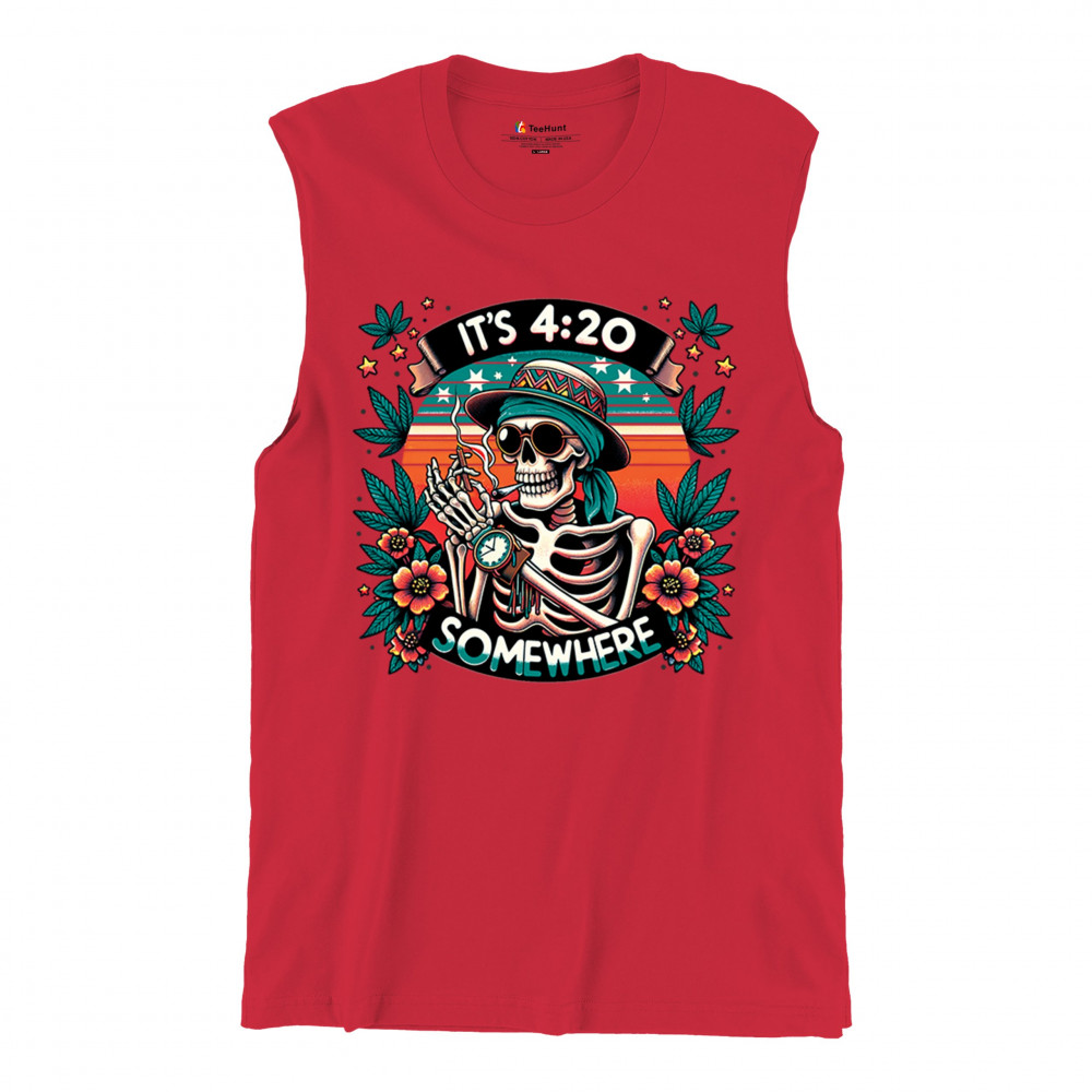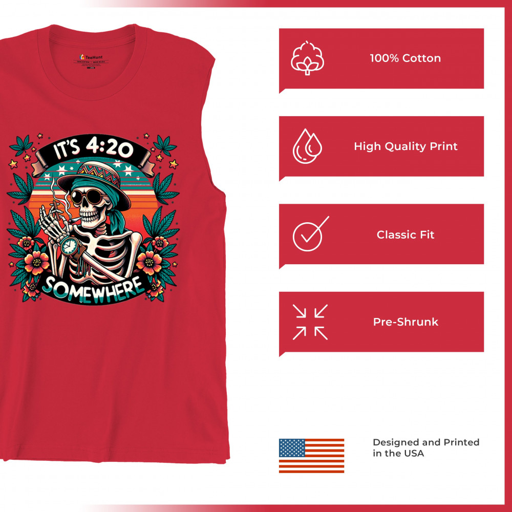 Get lifted with this “It’s 4:20 Somewhere†design featuring a joint-smoking skeleton, tropical sunset, and Deadhead stoner vibes. With bold trippy colors and beachy weed art, this tee is perfect for April 20 parties, summer festivals, and cannabis lovers living the high life.