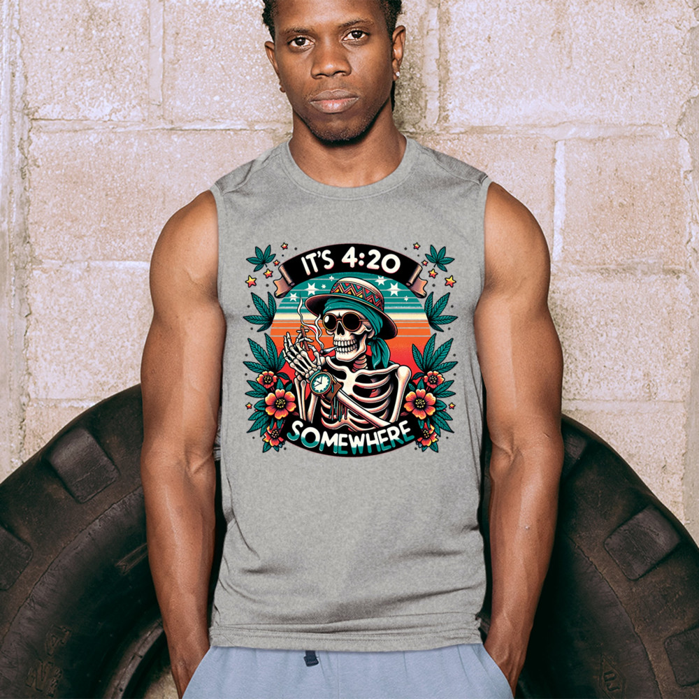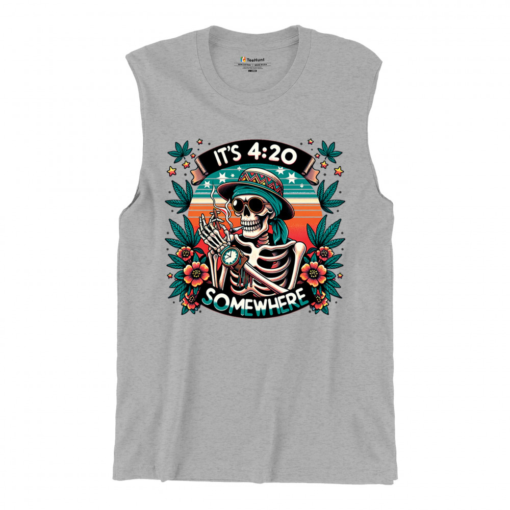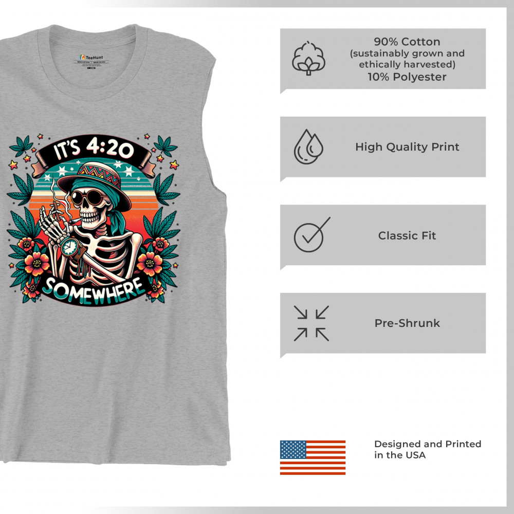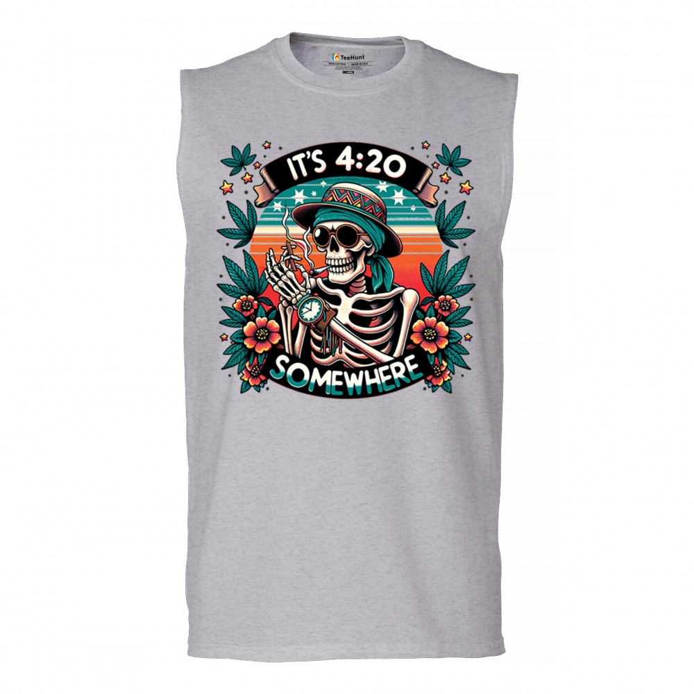 Get lifted with this “It’s 4:20 Somewhere†design featuring a joint-smoking skeleton, tropical sunset, and Deadhead stoner vibes. With bold trippy colors and beachy weed art, this tee is perfect for April 20 parties, summer festivals, and cannabis lovers living the high life.