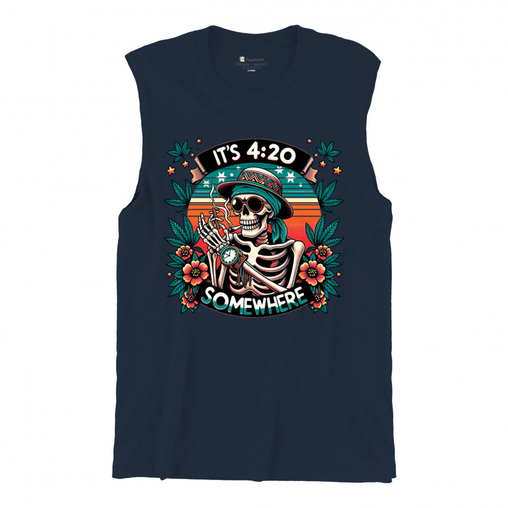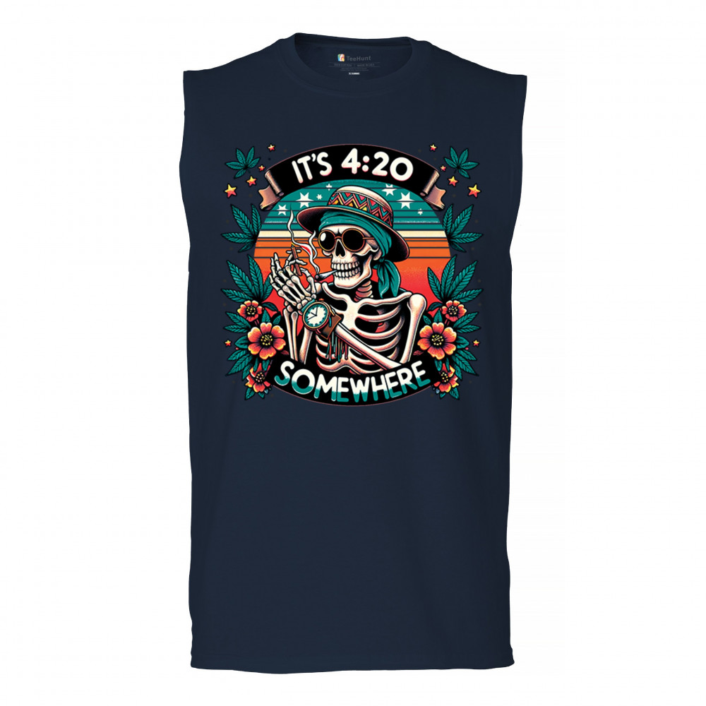Get lifted with this “It’s 4:20 Somewhere†design featuring a joint-smoking skeleton, tropical sunset, and Deadhead stoner vibes. With bold trippy colors and beachy weed art, this tee is perfect for April 20 parties, summer festivals, and cannabis lovers living the high life.