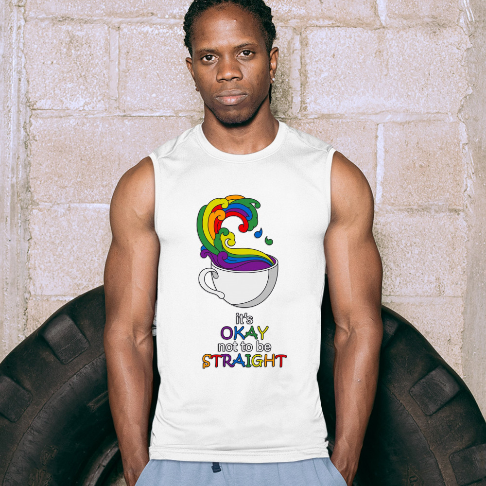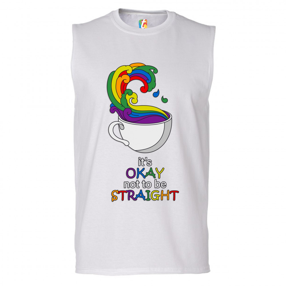 IT'S OKAY NOT TO BE STRAIGHT muscle shirt gay acceptance lgbtq pride men's white