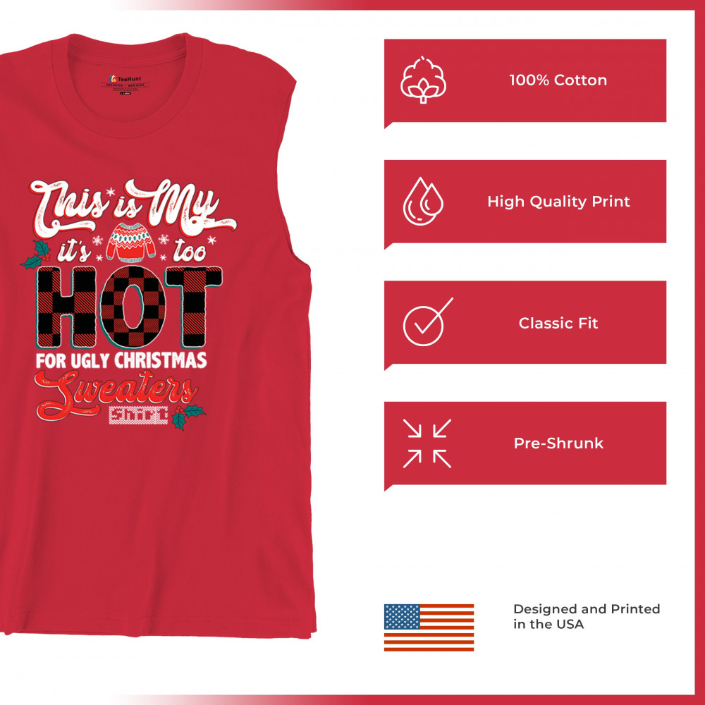 Stay festive without the extra warmth! This "Too Hot for Ugly Christmas Sweaters" shirt is perfect for those who love Christmas cheer with a lighthearted touch.