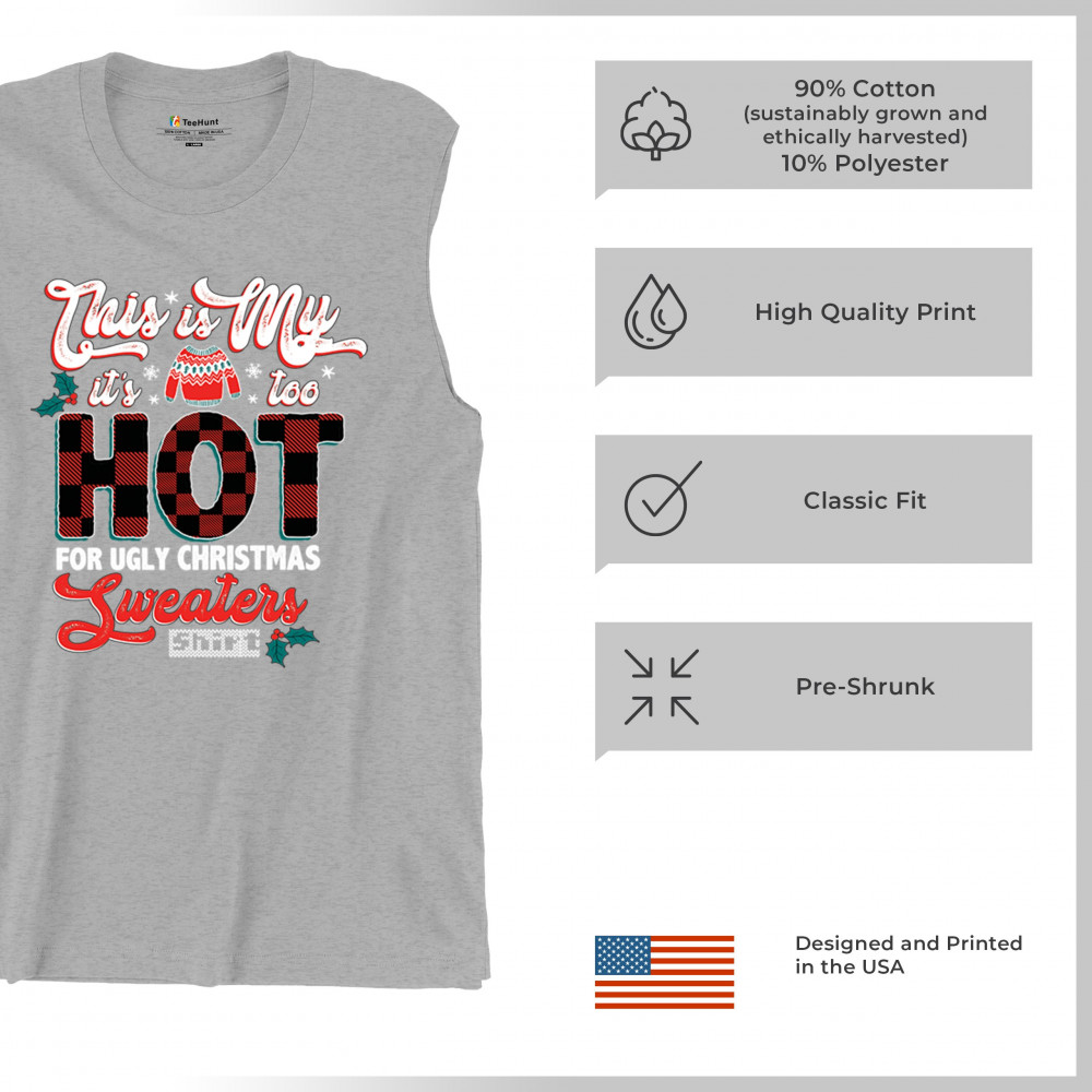 Stay festive without the extra warmth! This "Too Hot for Ugly Christmas Sweaters" shirt is perfect for those who love Christmas cheer with a lighthearted touch.