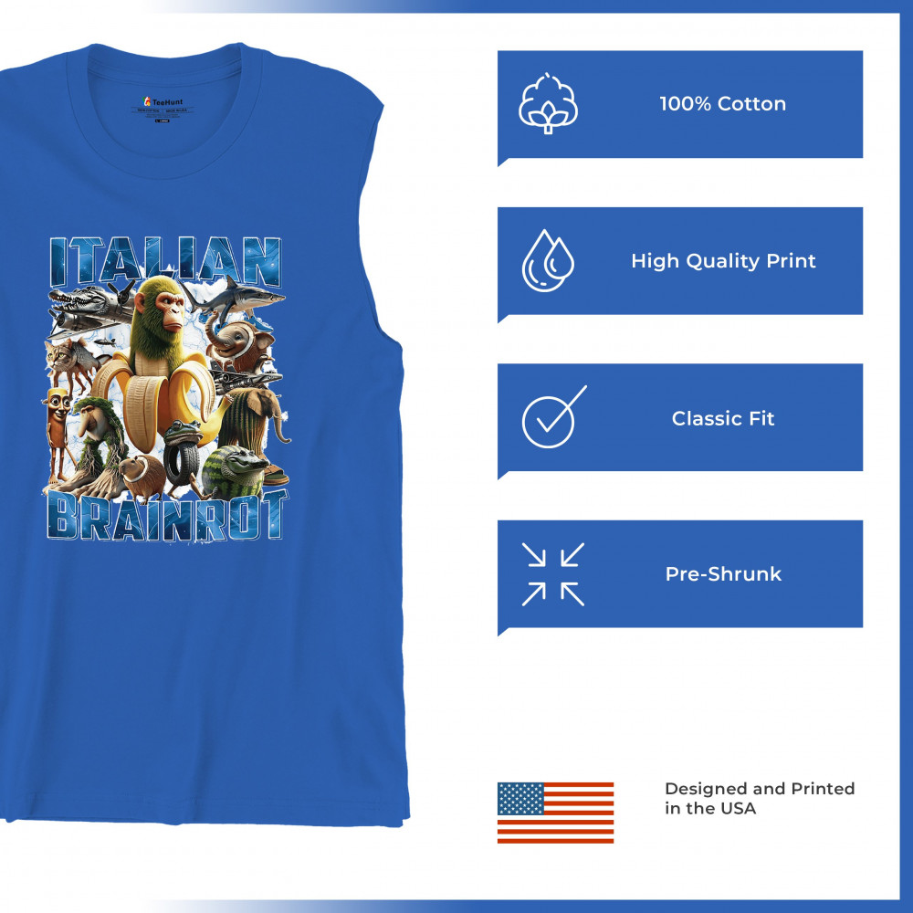 This design captures the full force of Italian brainrot—bananas, sharks, monkeys, and meme beasts collide in an unfiltered internet-core explosion. Perfect for fans of cursed humor, Gen Z trends, absurd fashion, TikTok memes, ironic style, surreal pop art, chaotic culture, digital nonsense, Gen Alpha brainrot, and hyper-online energy.