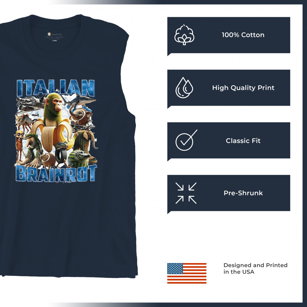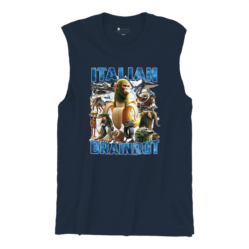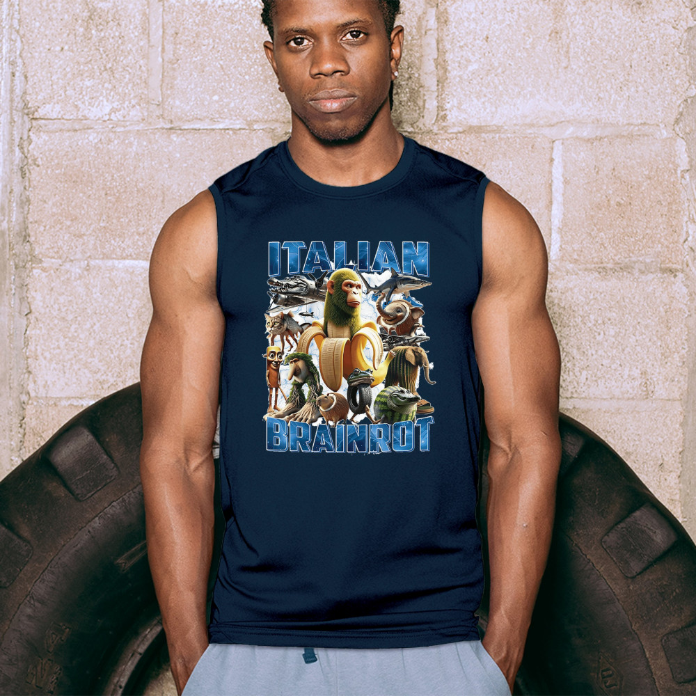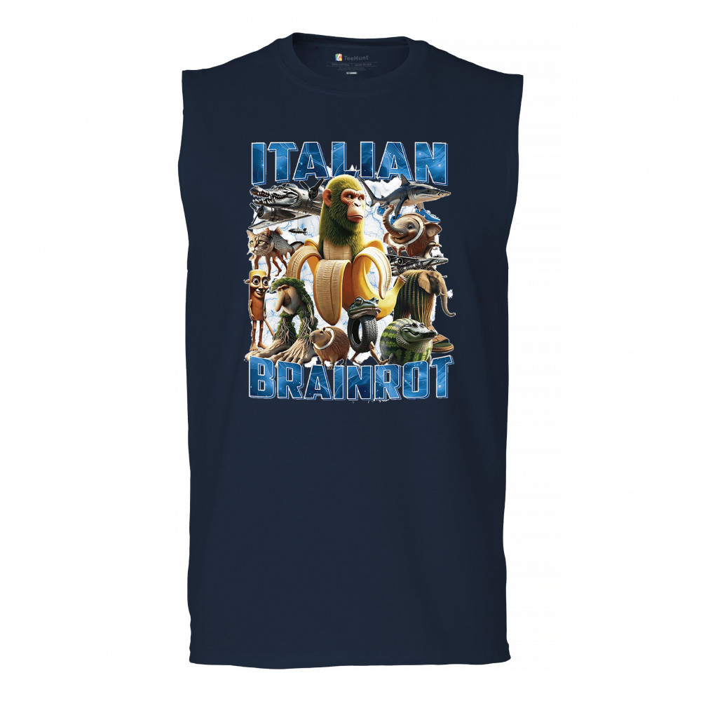 This design captures the full force of Italian brainrot—bananas, sharks, monkeys, and meme beasts collide in an unfiltered internet-core explosion. Perfect for fans of cursed humor, Gen Z trends, absurd fashion, TikTok memes, ironic style, surreal pop art, chaotic culture, digital nonsense, Gen Alpha brainrot, and hyper-online energy.
