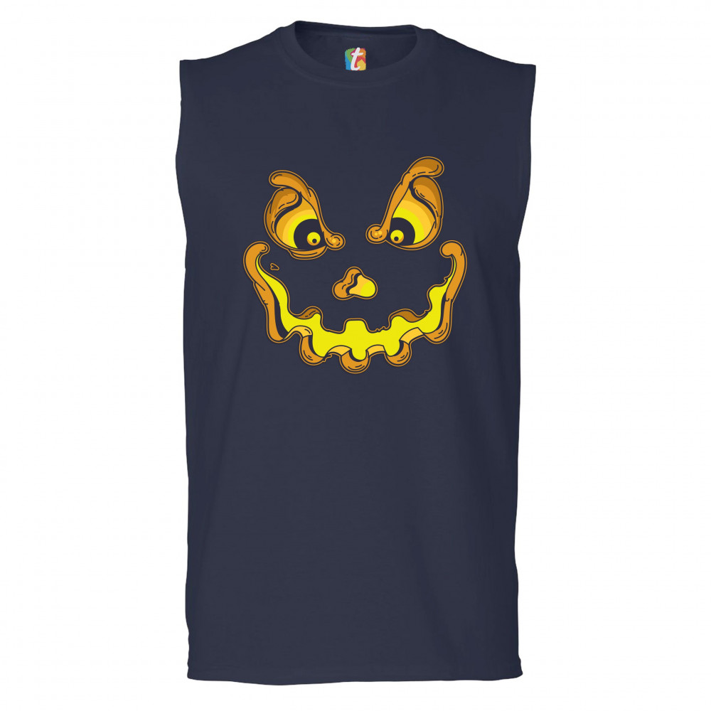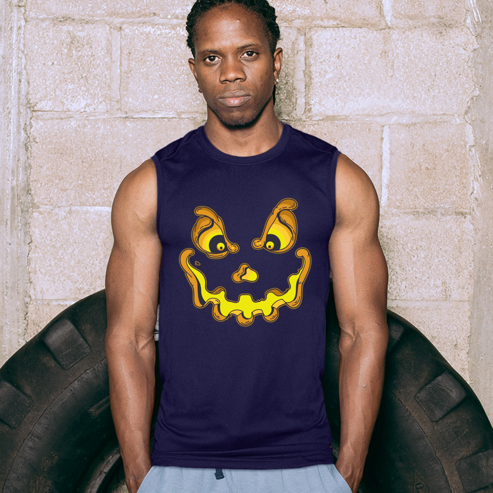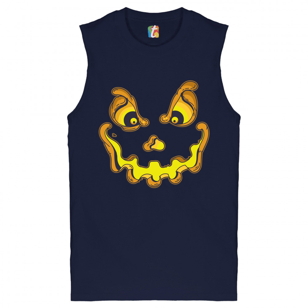 JACK-O-LANTERN PUMPKIN FACE muscle shirt trick-or-treat halloween men's navy blue