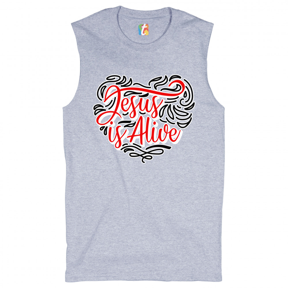 JESUS IS ALIVE muscle shirt happy easter bible jesus christ has risen men's gray