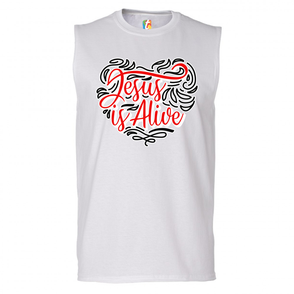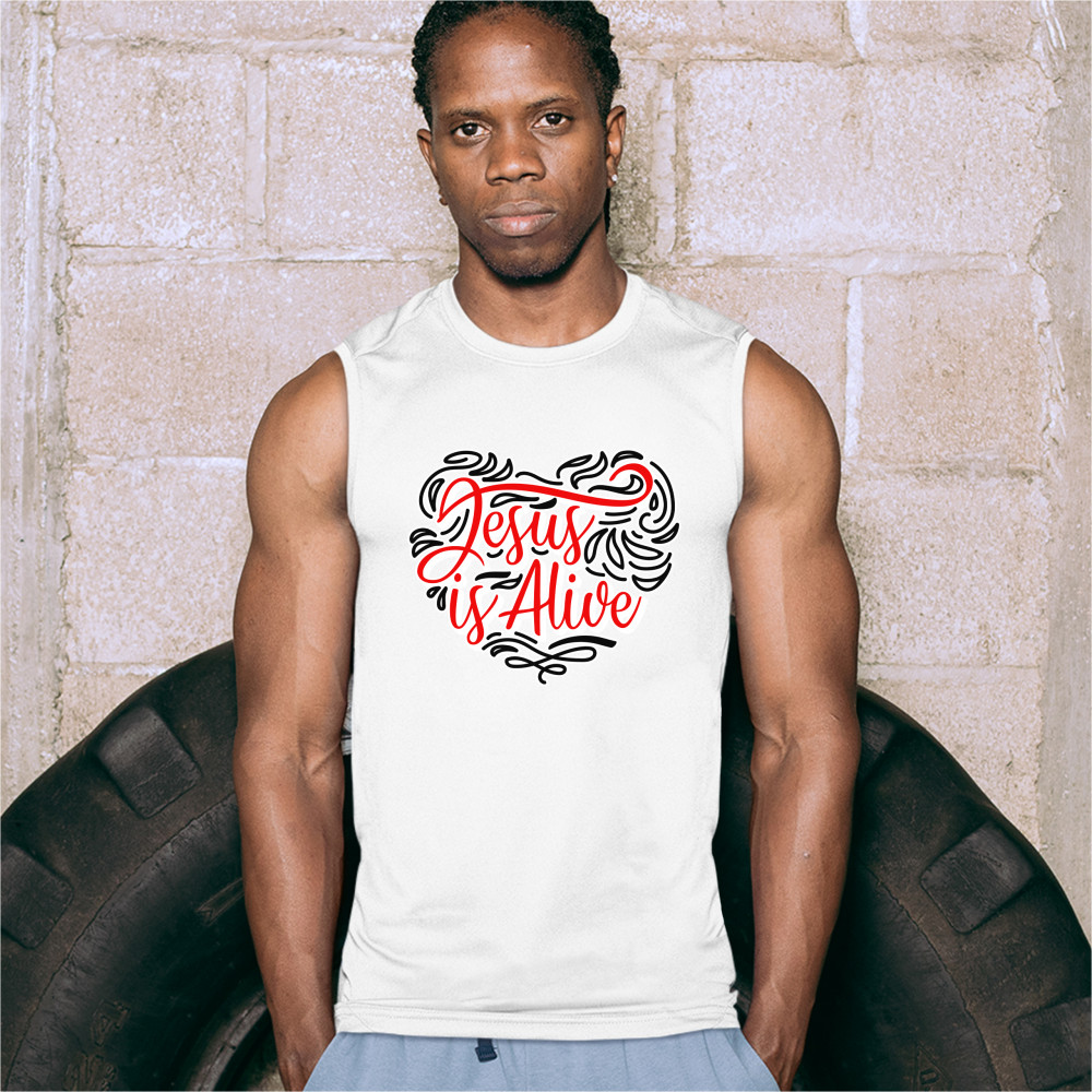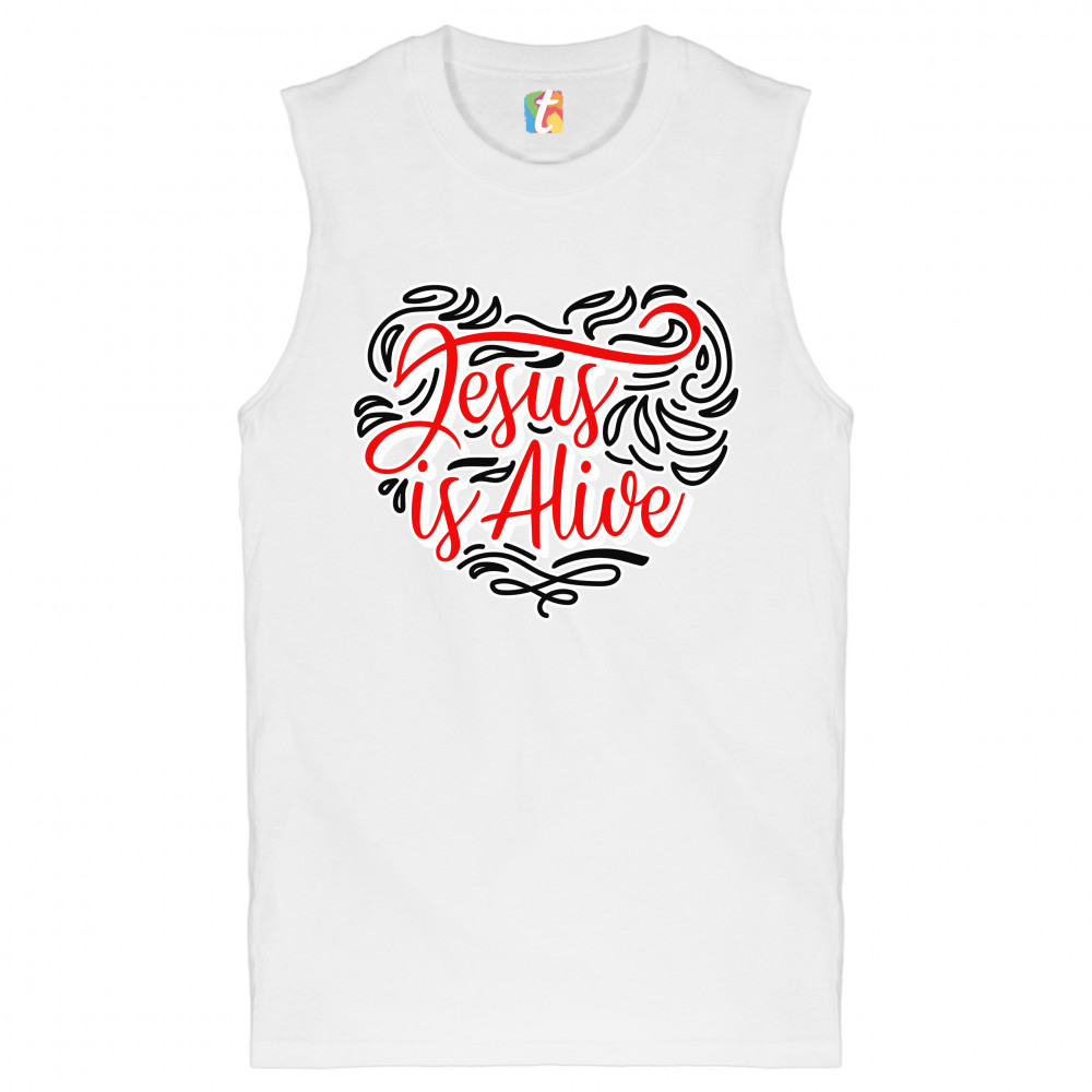 JESUS IS ALIVE muscle shirt happy easter bible jesus christ has risen men's white