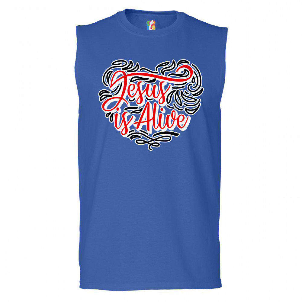 JESUS IS ALIVE muscle shirt happy easter bible jesus christ has risen men's blue