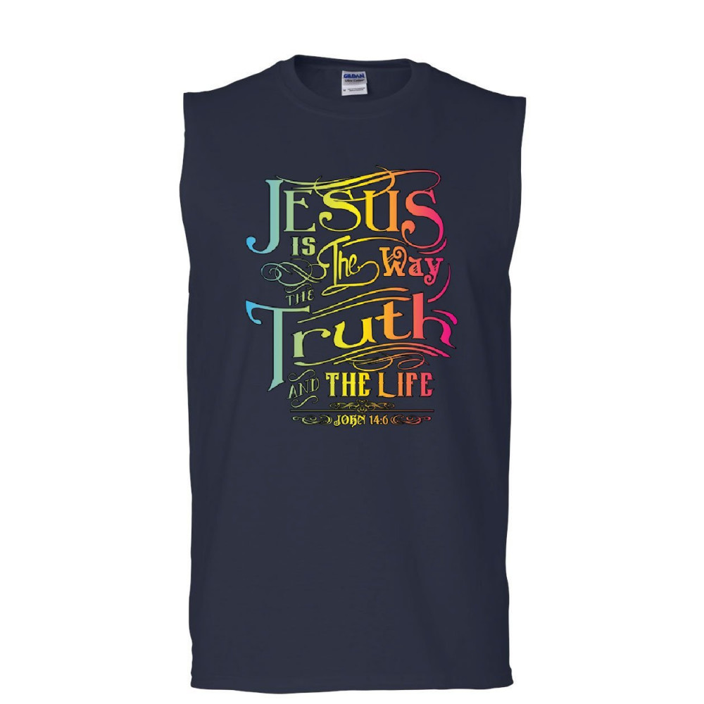 JESUS IS THE WAY muscle shirt truth life bible religion god lord pray sleeveless navy blue