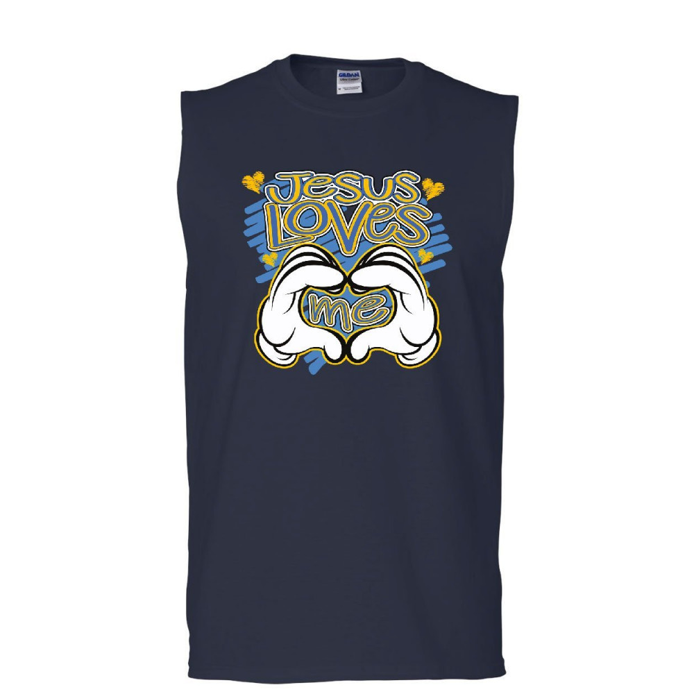 JESUS LOVES ME muscle shirt religion bible savior christianity church sleeveless navy blue