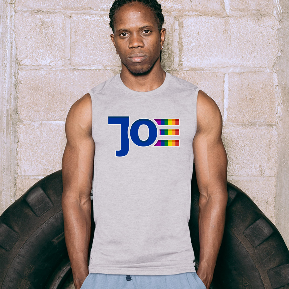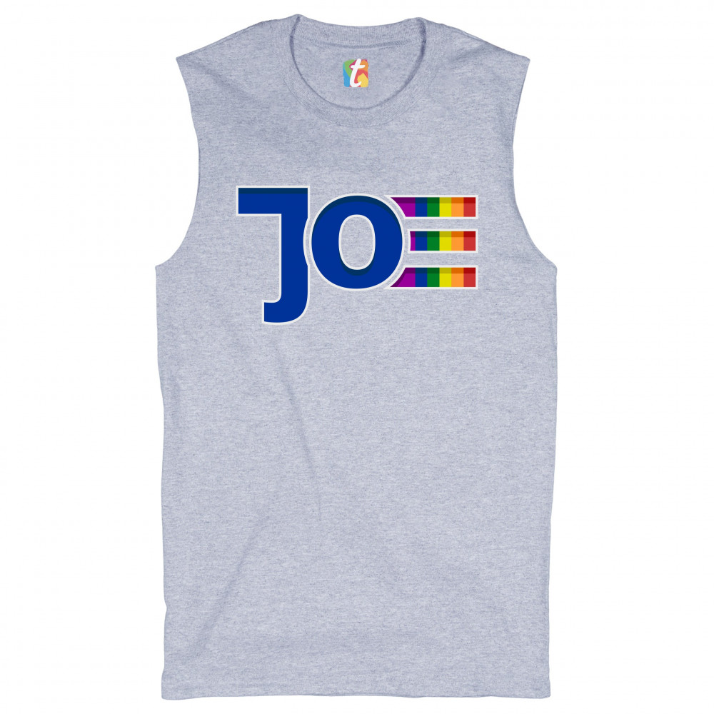 A political print featuring the name of the democratic presidential candidate "Joe". The letter "e" is painted with the colors of the lgbt rainbow. It is a great choice to wear to show your support for the democratic presidential nominee and his vice pres