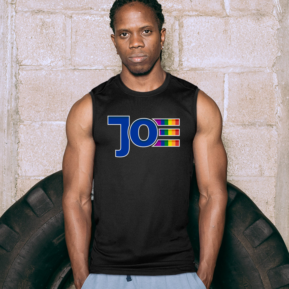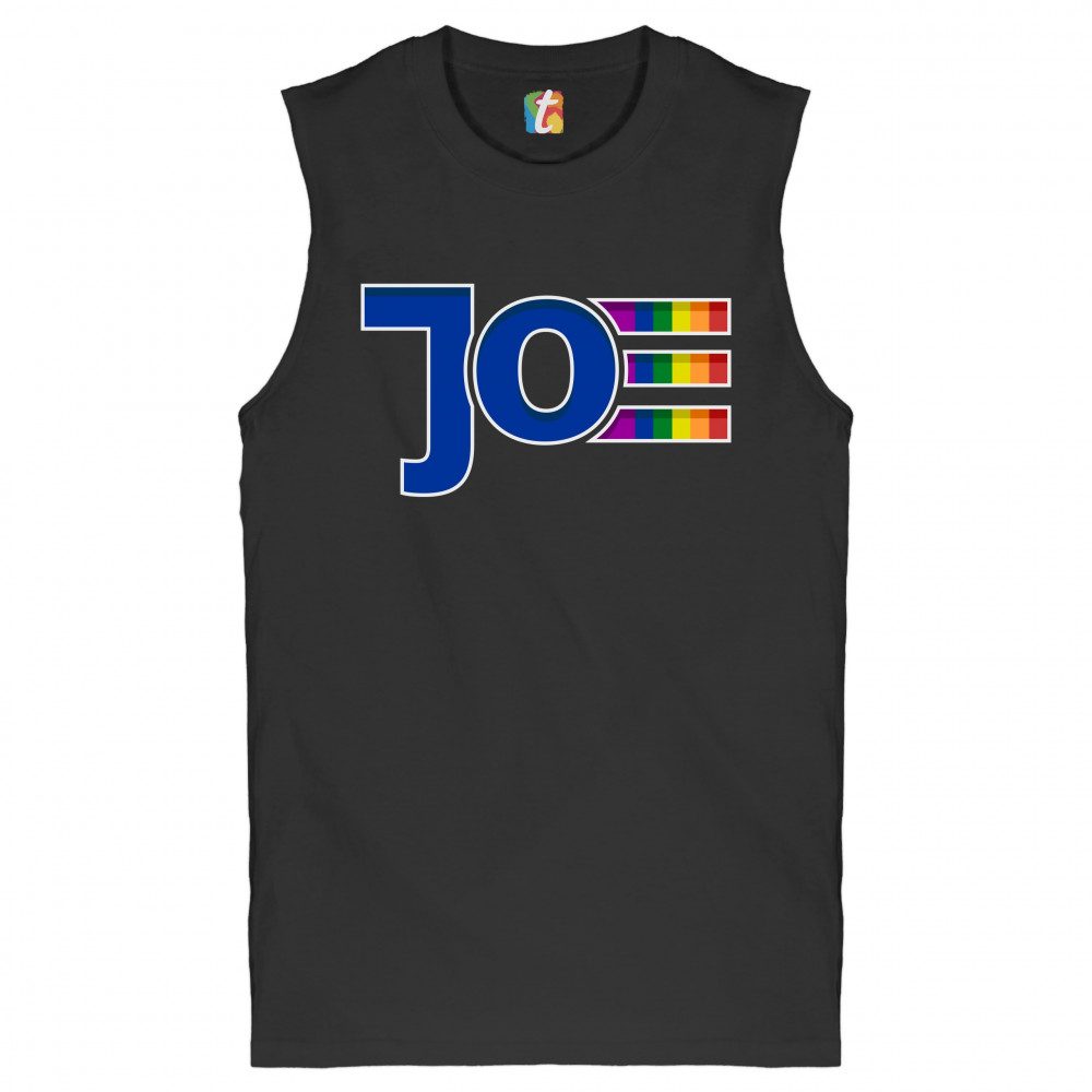 A political print featuring the name of the democratic presidential candidate "Joe". The letter "e" is painted with the colors of the lgbt rainbow. It is a great choice to wear to show your support for the democratic presidential nominee and his vice pres