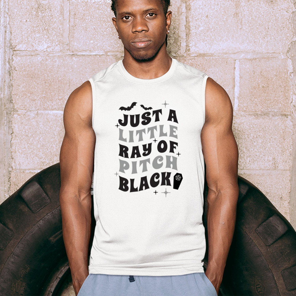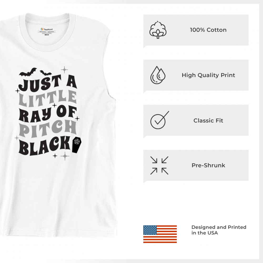 Showcase your dark humor with the "Just a Little Ray of Pitch Black" design—perfect for Halloween or everyday gothic style.