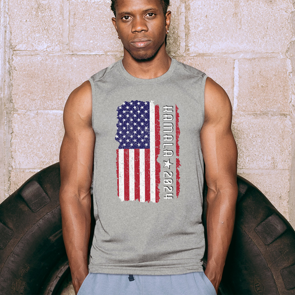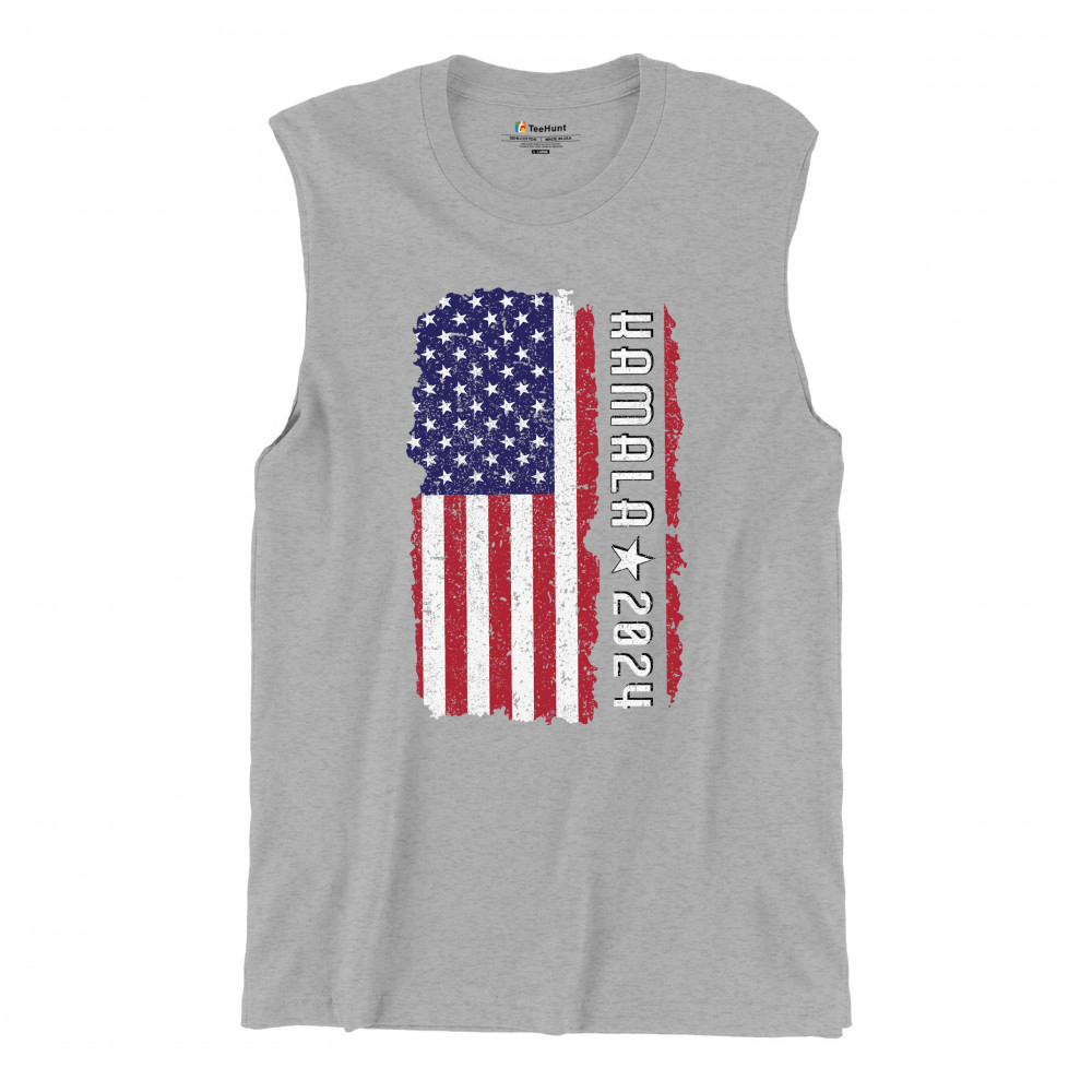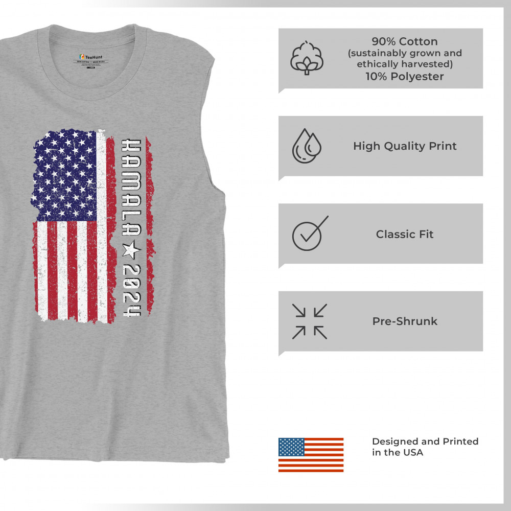 Support Kamala Harris 2024 with a bold design featuring a distressed American flag. Perfect for rallies and political events. Celebrate diversity!