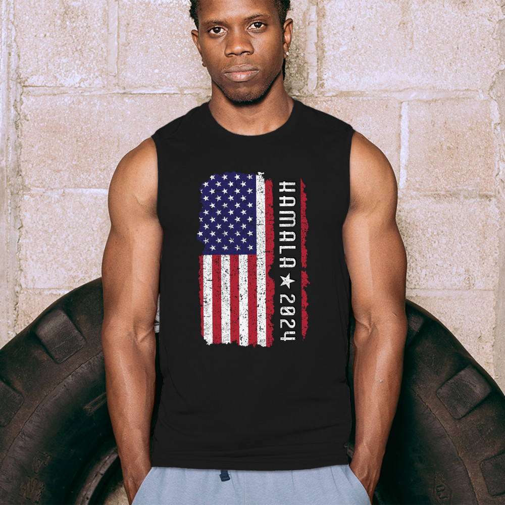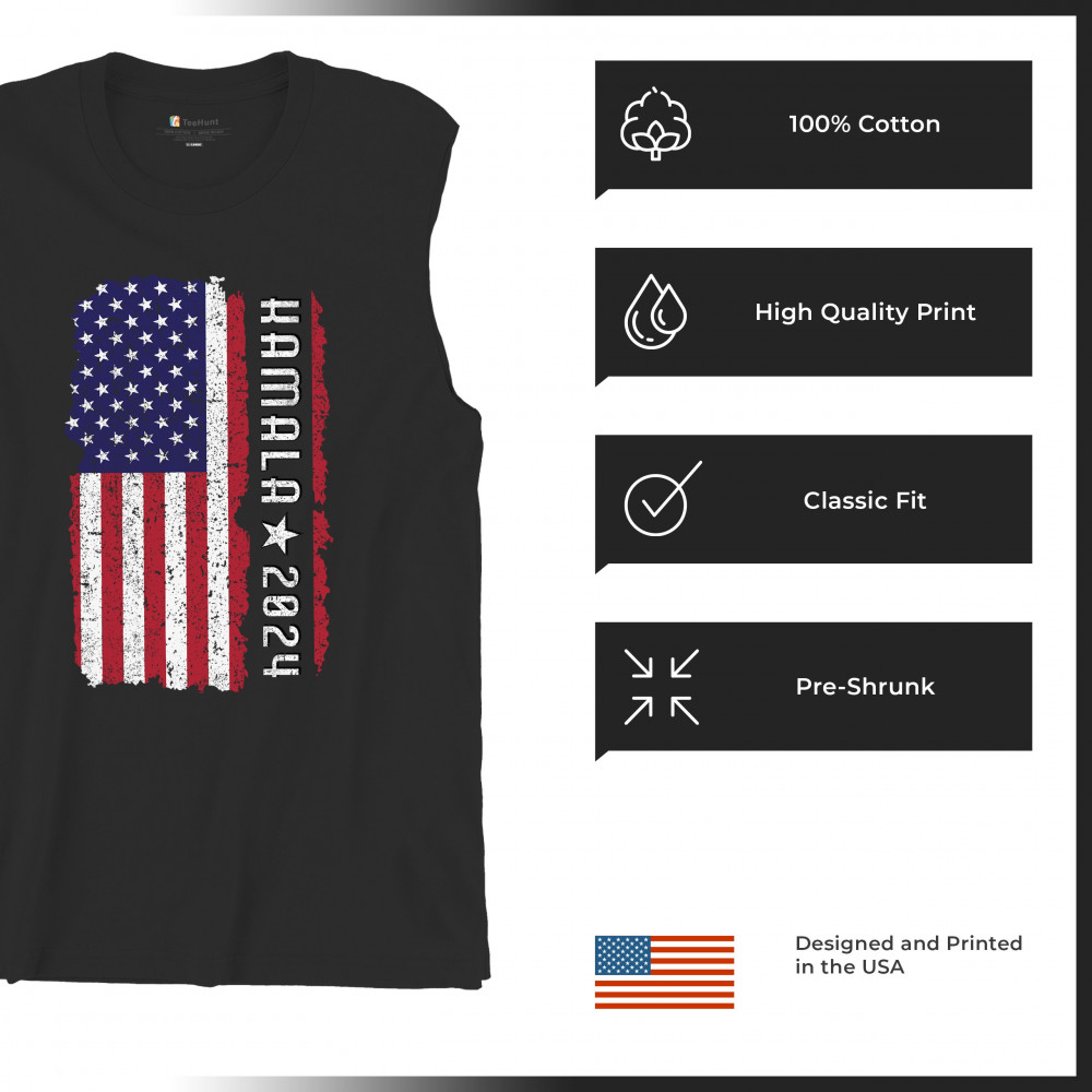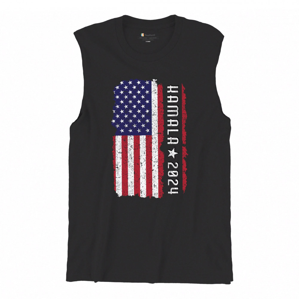 Support Kamala Harris 2024 with a bold design featuring a distressed American flag. Perfect for rallies and political events. Celebrate diversity!