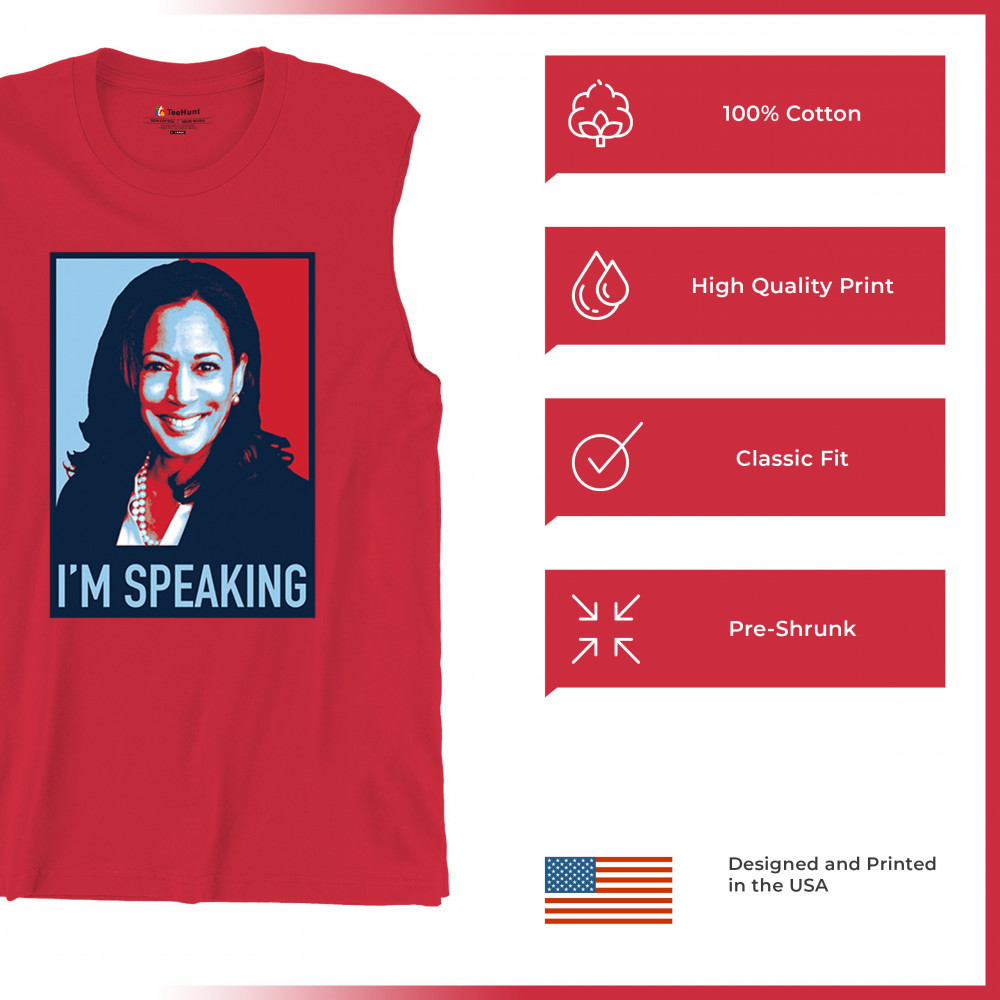 Show your support for Kamala Harris and Tim Walz with this "I'm Speaking" design. A bold statement celebrating liberal values and progressive policies. "Let's Win This"