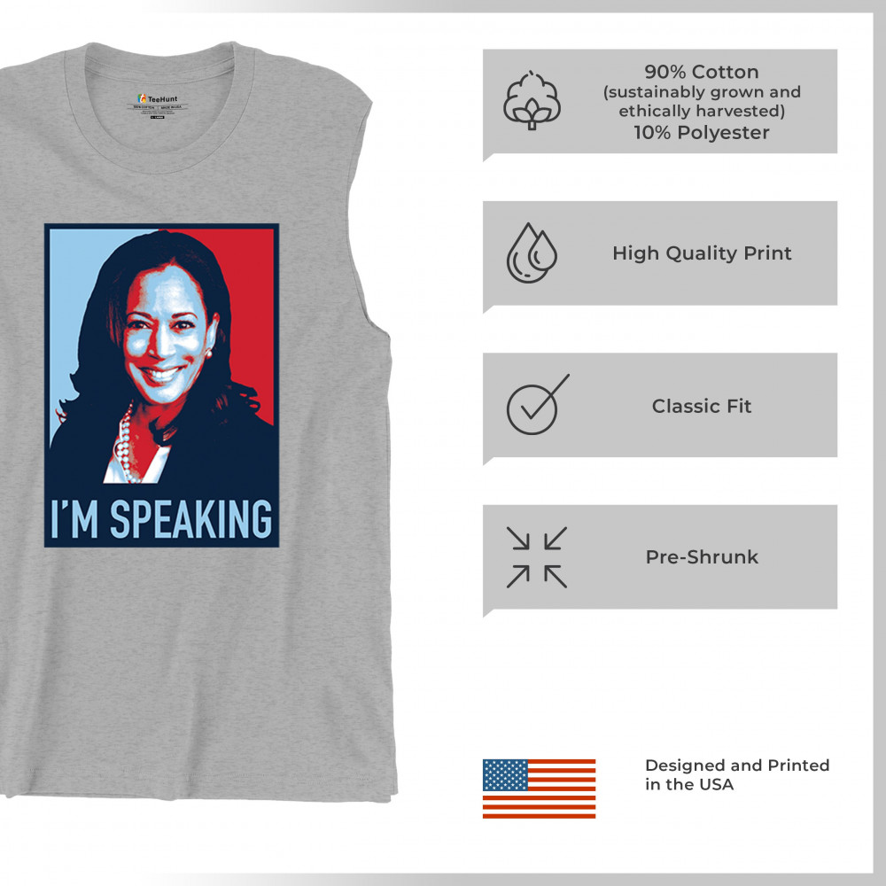 Show your support for Kamala Harris and Tim Walz with this "I'm Speaking" design. A bold statement celebrating liberal values and progressive policies. "Let's Win This"