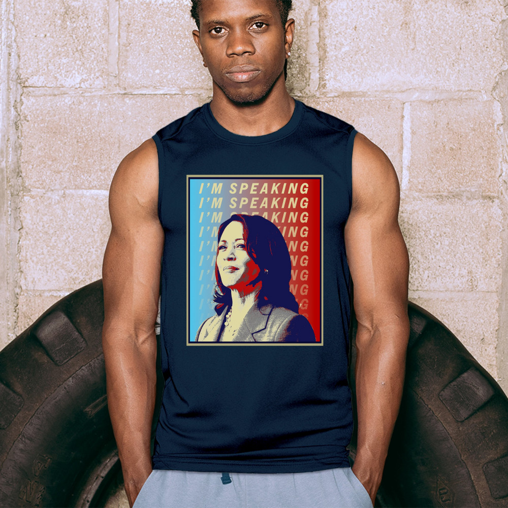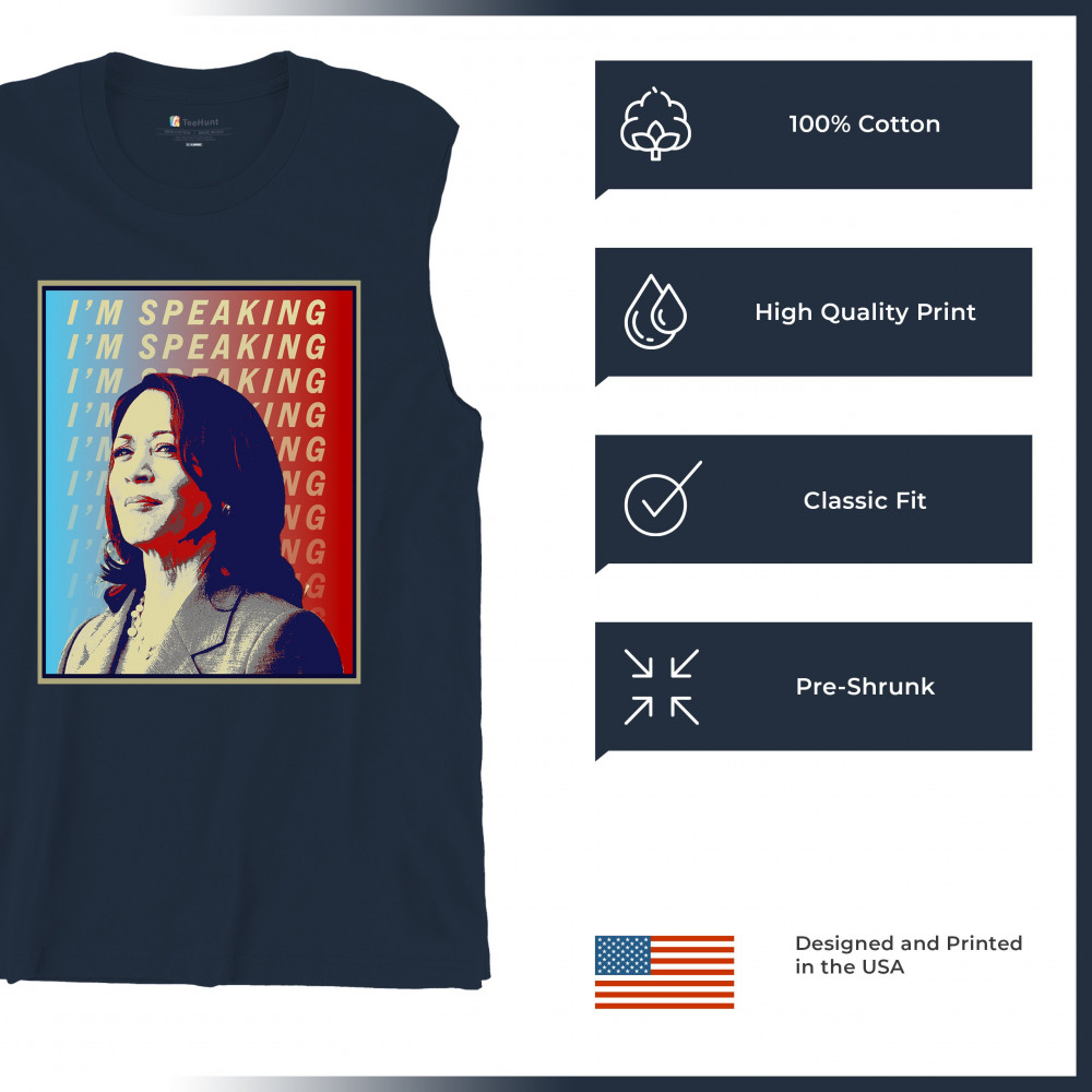 Support Kamala Harris with this bold and inspiring design. "I'M SPEAKING" echoes her powerful voice in the political arena, making it perfect for anti-Trump supporters, liberals, and Democrats. Crafted from durable materials, this design is comfortable for any event, from rallies to casual outings. Celebrate diversity and the historic candidacy of the potential first female president, resonating with black Americans, Hispanic Americans, LGBTQ supporters, and other minorities. Make a statement of hope and progress with this unique design.