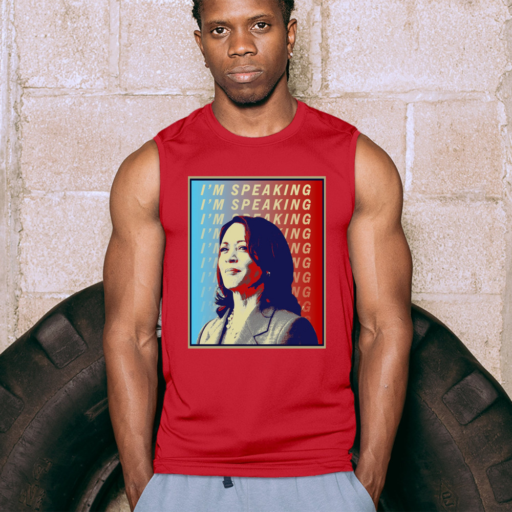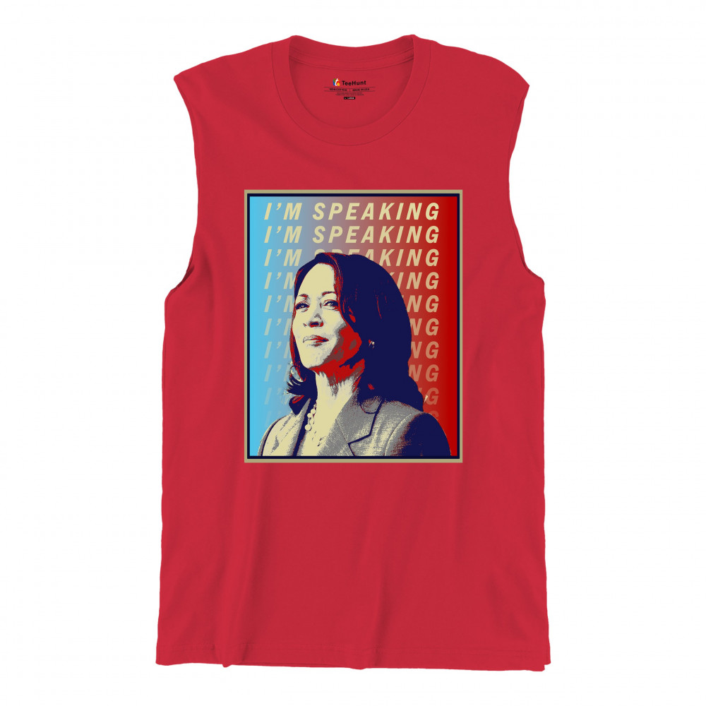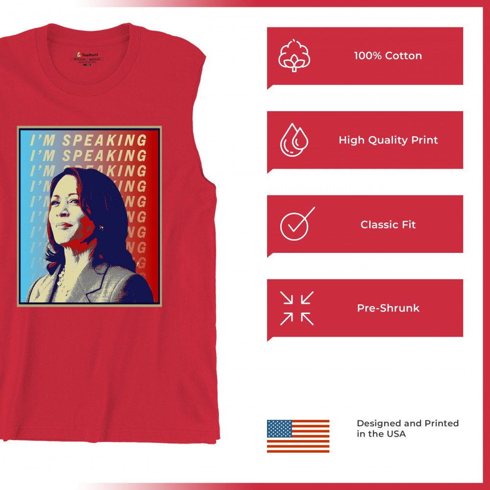 Support Kamala Harris with this bold and inspiring design. "I'M SPEAKING" echoes her powerful voice in the political arena, making it perfect for anti-Trump supporters, liberals, and Democrats. Crafted from durable materials, this design is comfortable for any event, from rallies to casual outings. Celebrate diversity and the historic candidacy of the potential first female president, resonating with black Americans, Hispanic Americans, LGBTQ supporters, and other minorities. Make a statement of hope and progress with this unique design.