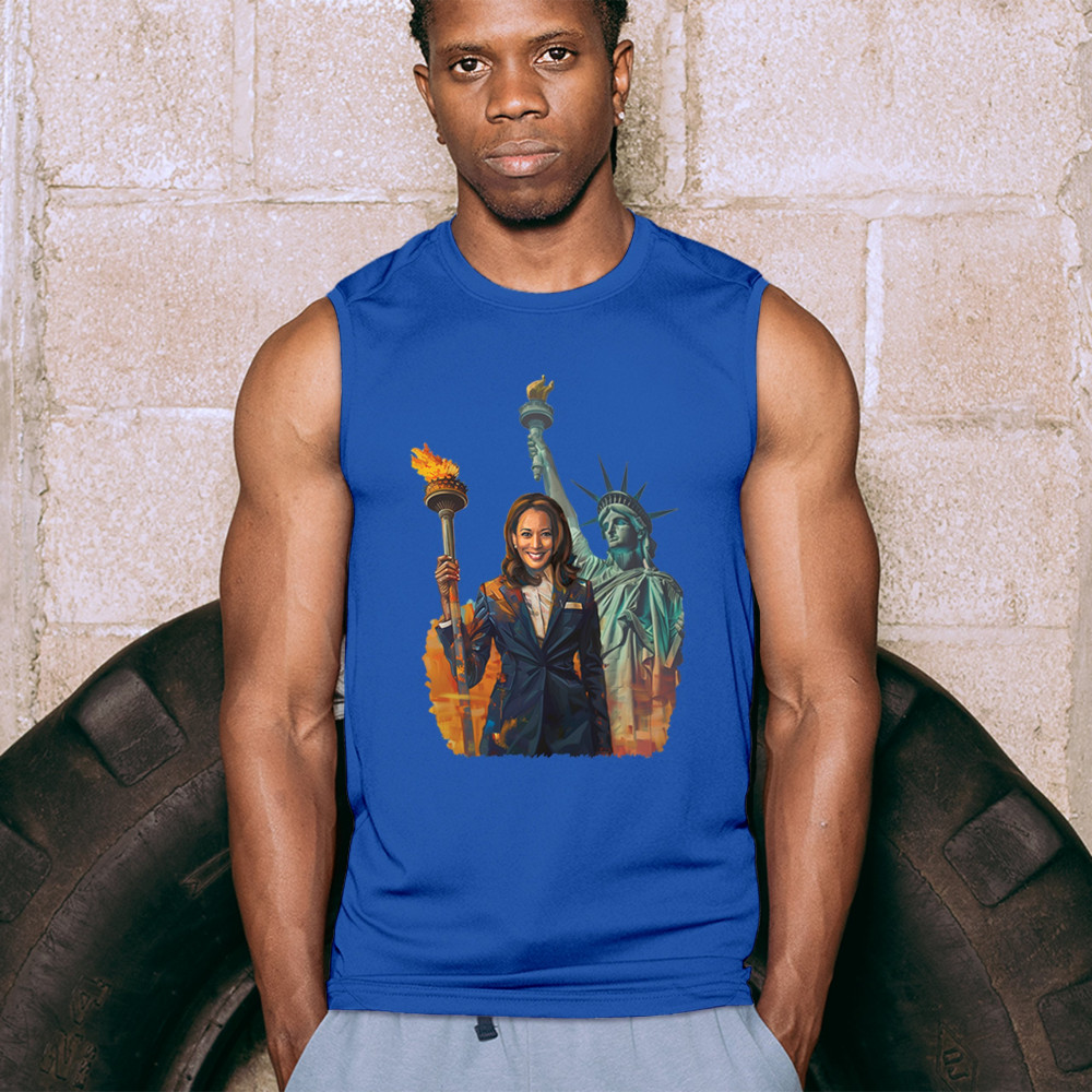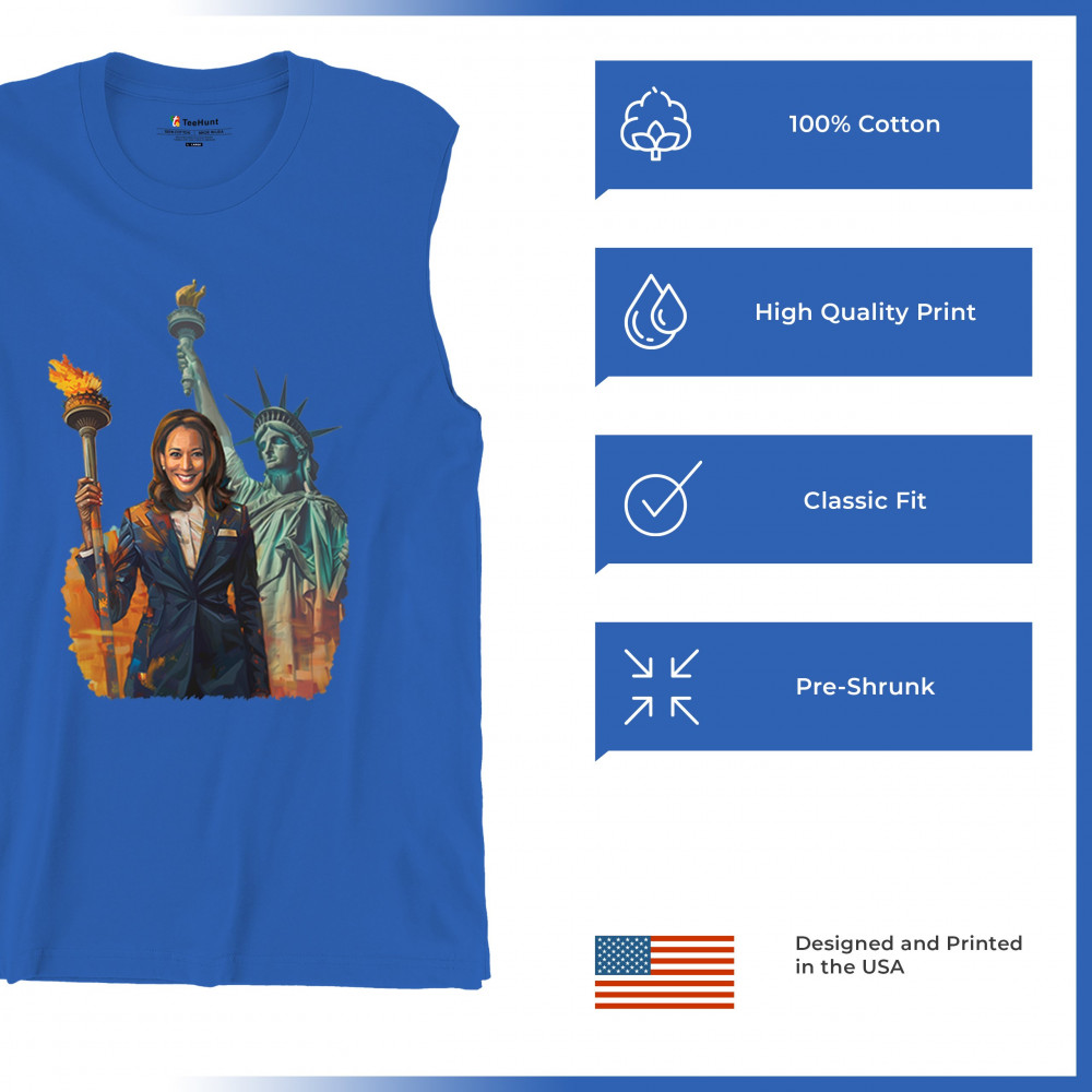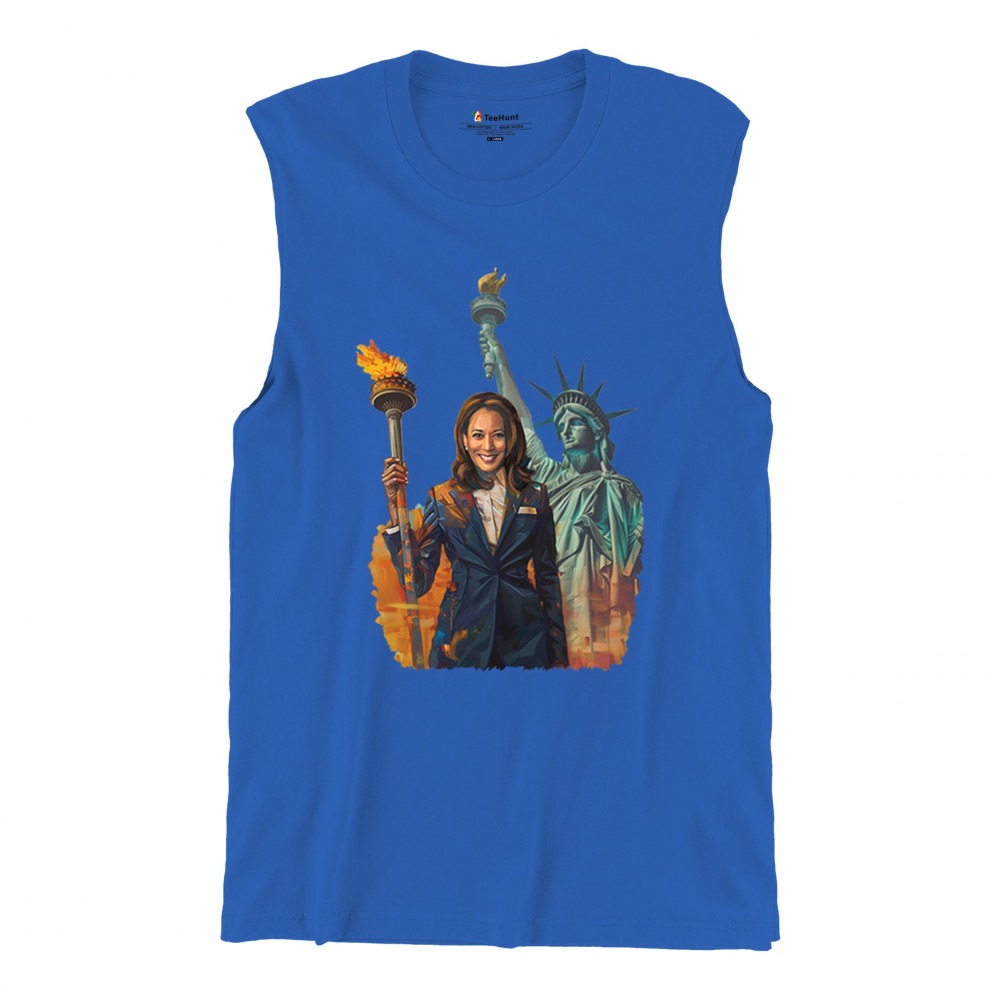 Show your support for Harris-Walz 2024 with this bold design featuring Kamala Harris and the Statue of Liberty. Stand for justice, equality, and a brighter future.