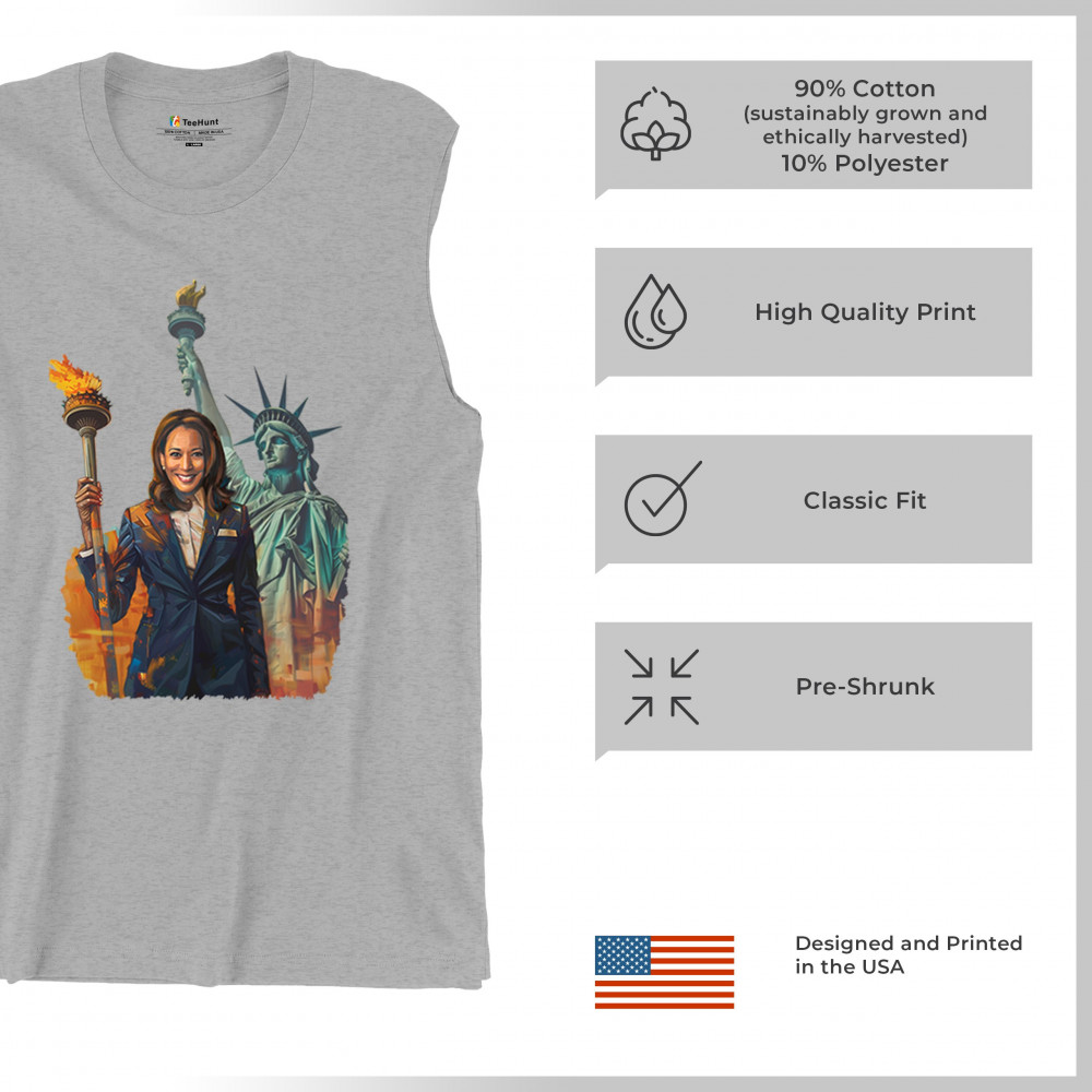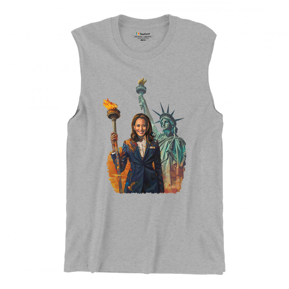 Show your support for Harris-Walz 2024 with this bold design featuring Kamala Harris and the Statue of Liberty. Stand for justice, equality, and a brighter future.
