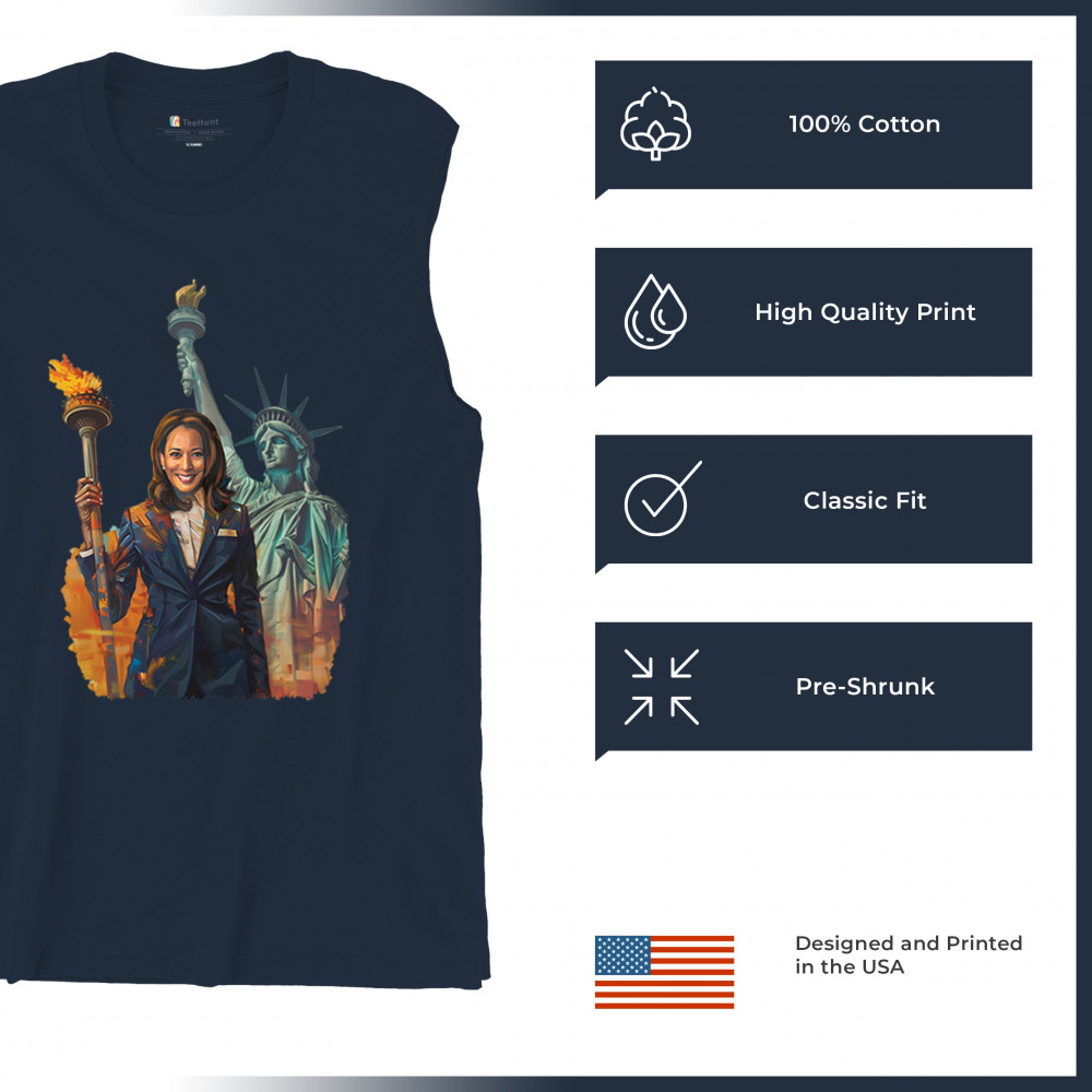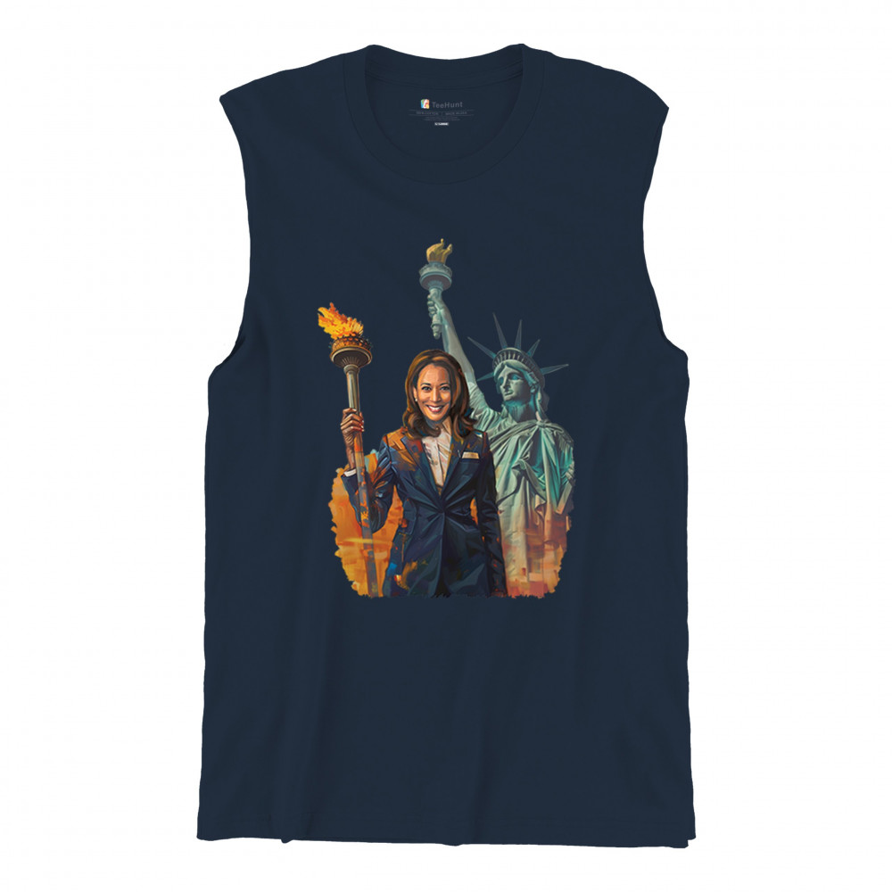 Show your support for Harris-Walz 2024 with this bold design featuring Kamala Harris and the Statue of Liberty. Stand for justice, equality, and a brighter future.