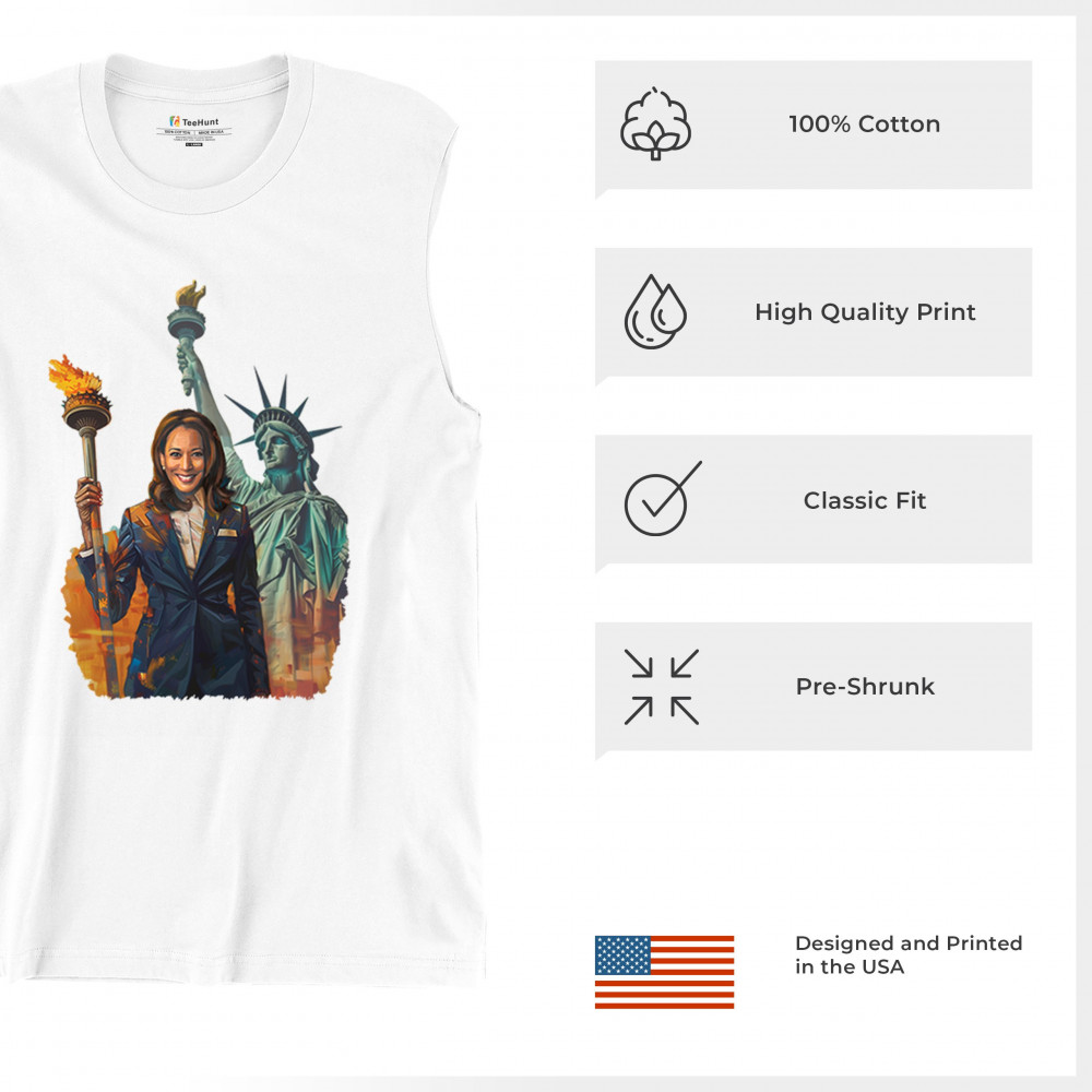 Show your support for Harris-Walz 2024 with this bold design featuring Kamala Harris and the Statue of Liberty. Stand for justice, equality, and a brighter future.