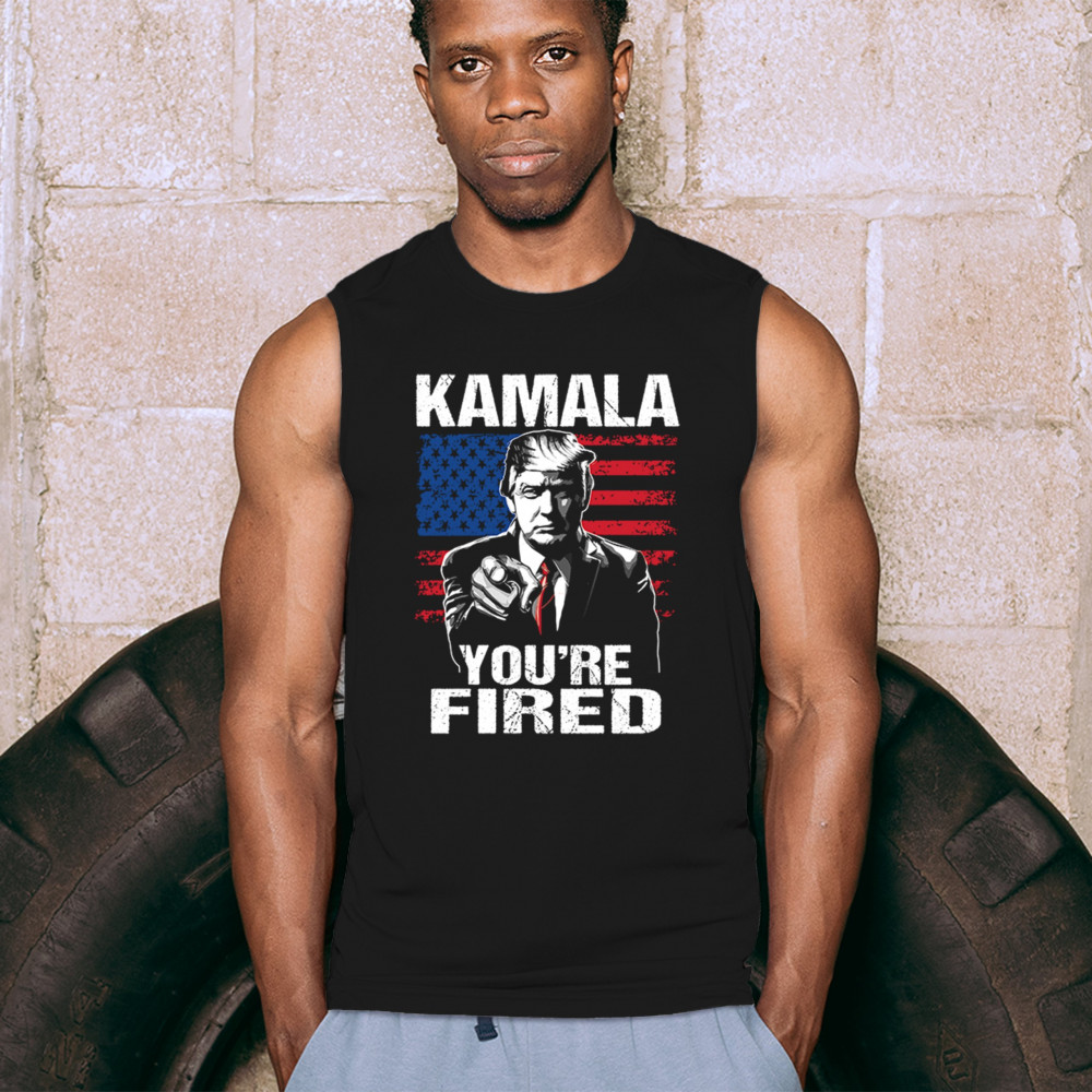 KAMALA YOU ARE FIRED TRUMP 2024 muscle shirt maga 45 47 america first men's black