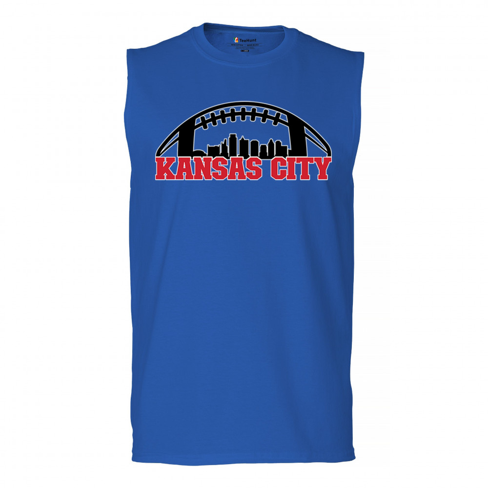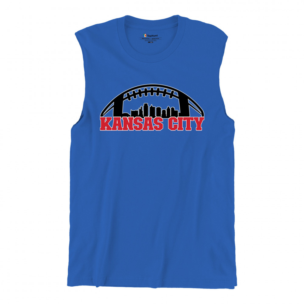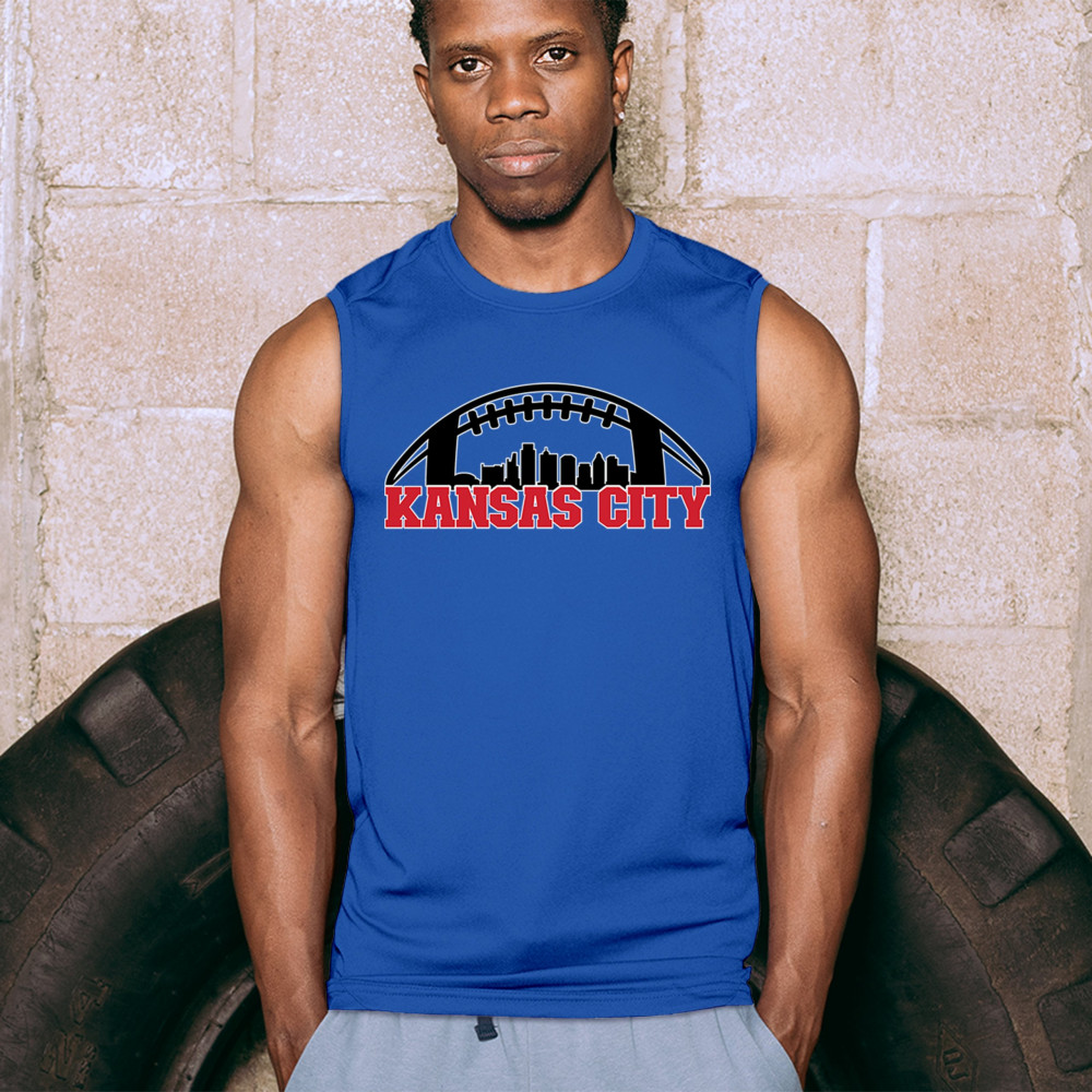 Celebrate Kansas City with a bold football design featuring the city skyline. Perfect for game days, tailgates, or proud sports fans.