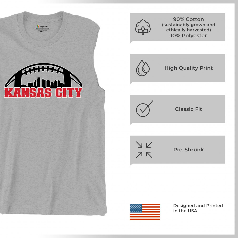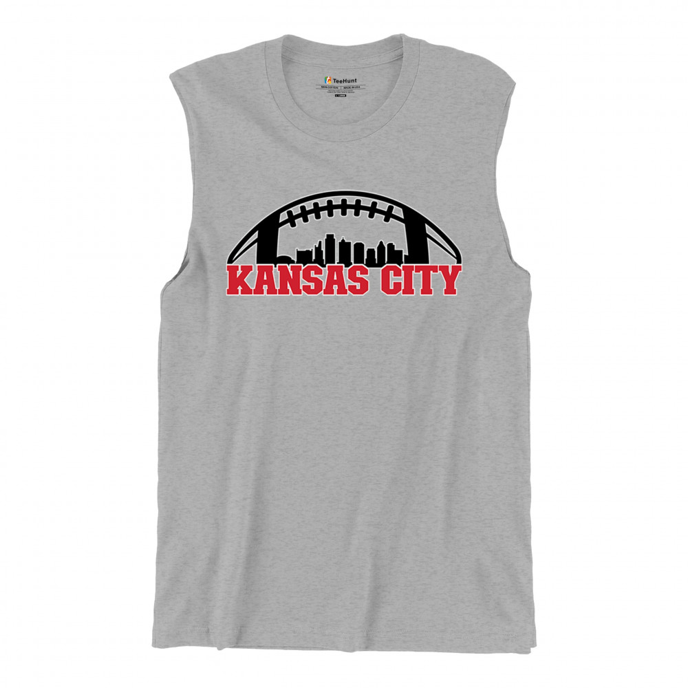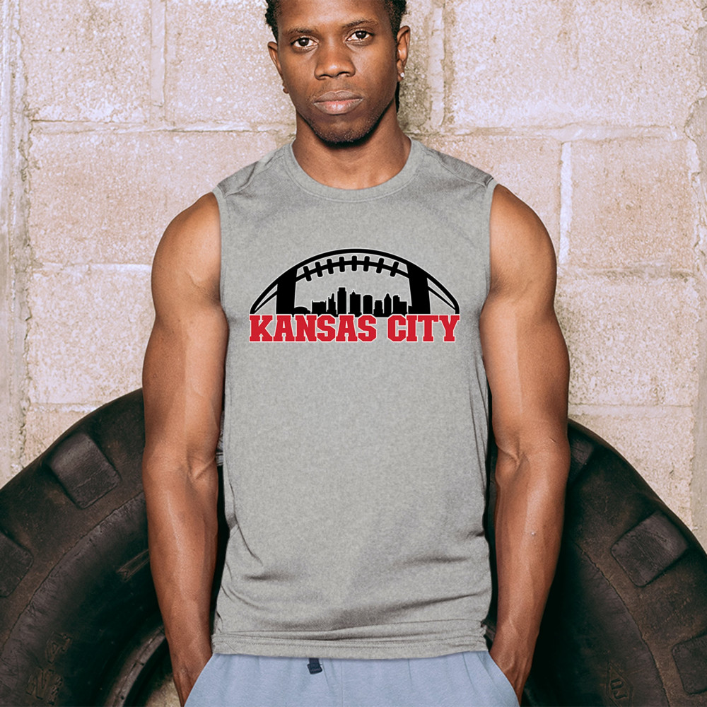 Celebrate Kansas City with a bold football design featuring the city skyline. Perfect for game days, tailgates, or proud sports fans.