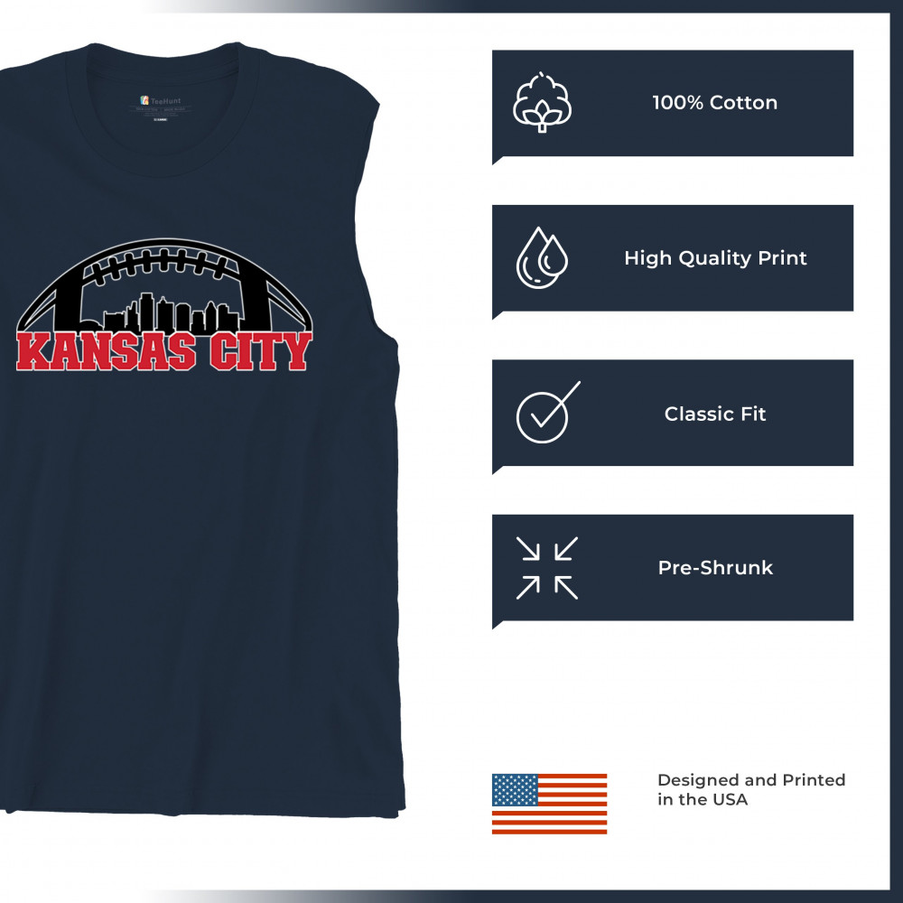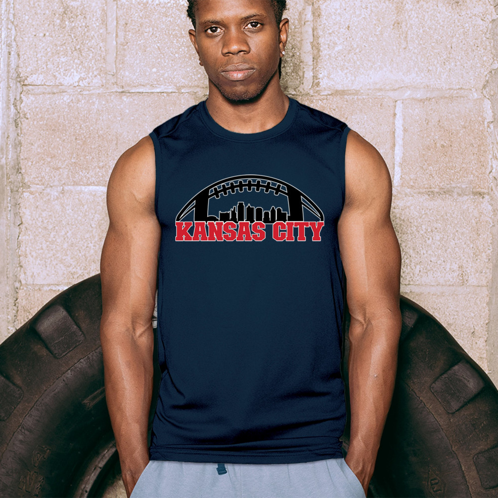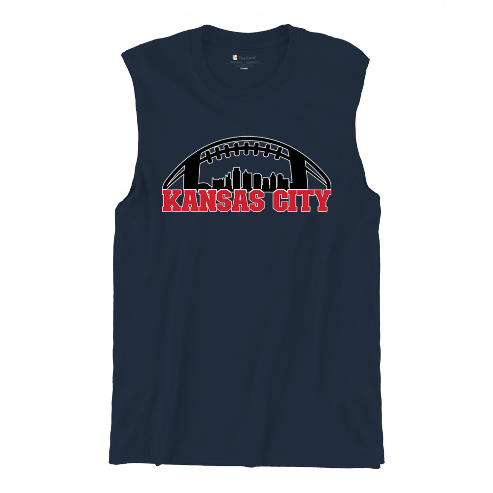 Celebrate Kansas City with a bold football design featuring the city skyline. Perfect for game days, tailgates, or proud sports fans.