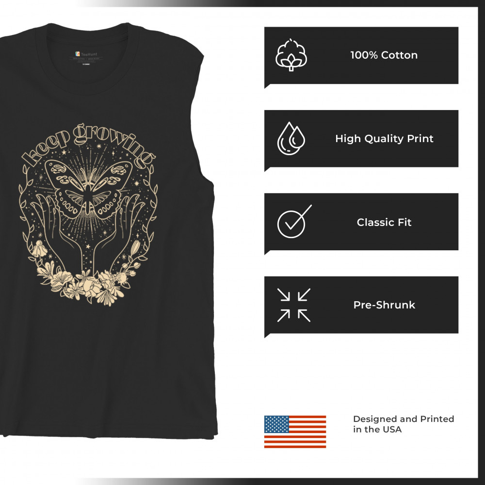 Step into your transformation with this Keep Growing design, featuring a celestial butterfly held between graceful hands and blooming flowers. A visual symbol of healing, renewal, and inner strength—perfect for journaling, meditation, yoga, or nature-inspired living. Ideal for dreamers, wellness seekers, and spiritual adventurers.